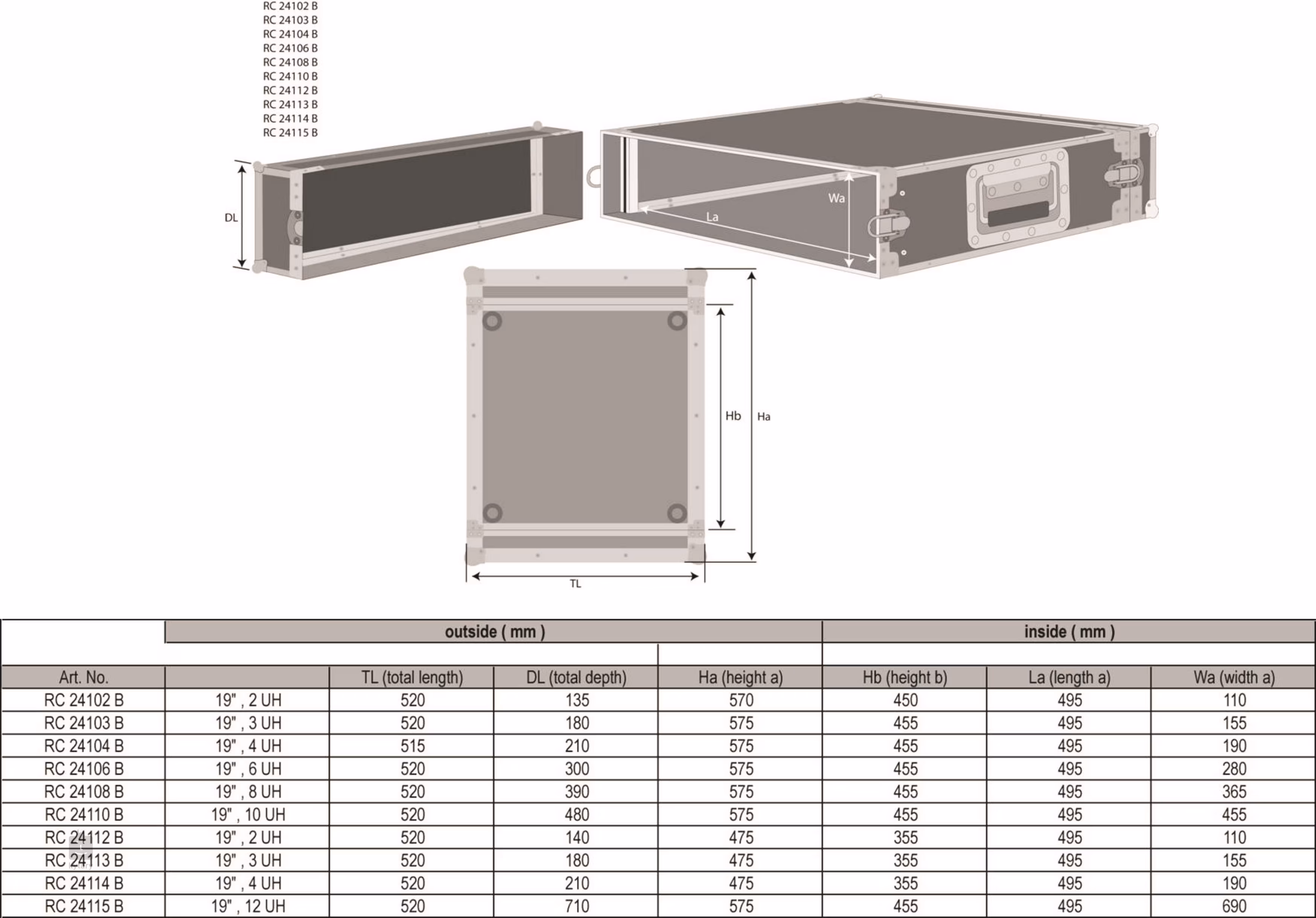 Robustní 19" pouzdro pro profesonální použití, na zařízení o velikosti do 15 HE. Pevný 19" Case pro rack 2 HE. Slide-Mounting System - lišty pro snadné posouvání.