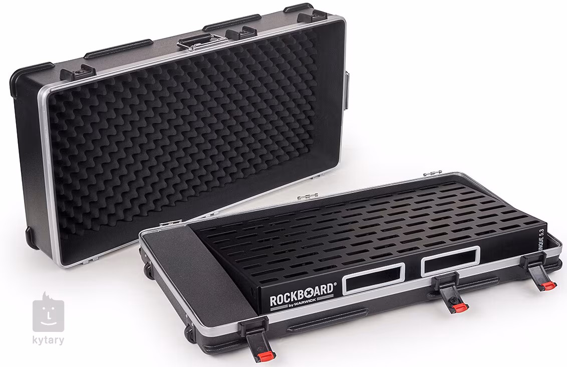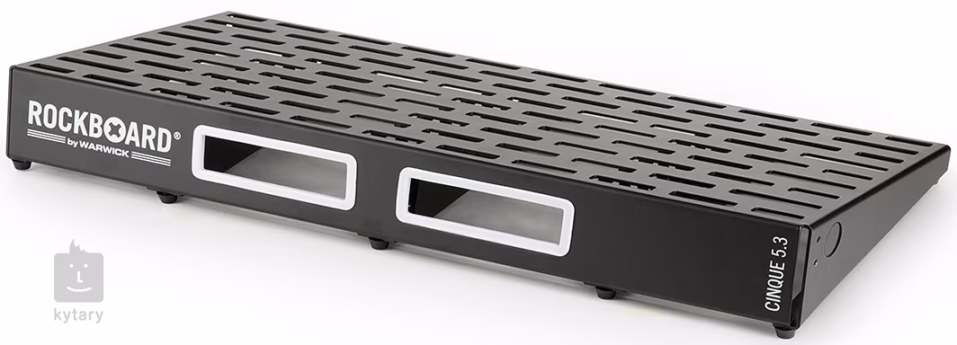 Pedalboard Rockboard CINQUE 5,3 with ABS Case vychází z nového designu pedalboardů Rockboard/Warwick z roku 2018, Prioritou bylo zejména snížení váhy a zvýšení pevnosti a odolnosti, čehož bylo docíleno novou konstrukcí z jednoho kusu za studena válcovaného a nesvařovaného hliníku, Pedalboard bez problému pojme 15 až 25 pedálových efektů (v závislosti na jejich velikosti), Jeho šikovný design s rozšířenými sloty vám umožní používat upevňovače pedálů Rockboard QuickMount plates v různých tvarech a velikostech (nejsou součástí balení, okamžité řešení představuje přibalená páska se suchým zipem), jednoduše uchytit na spodní stranu pedalboardu napájecí multiadaptér a maximálně efektivně organizovat kabely a propojky (i díky prostoru pro montáž zásuvných modulů/patchbayů Rockboard MOD),