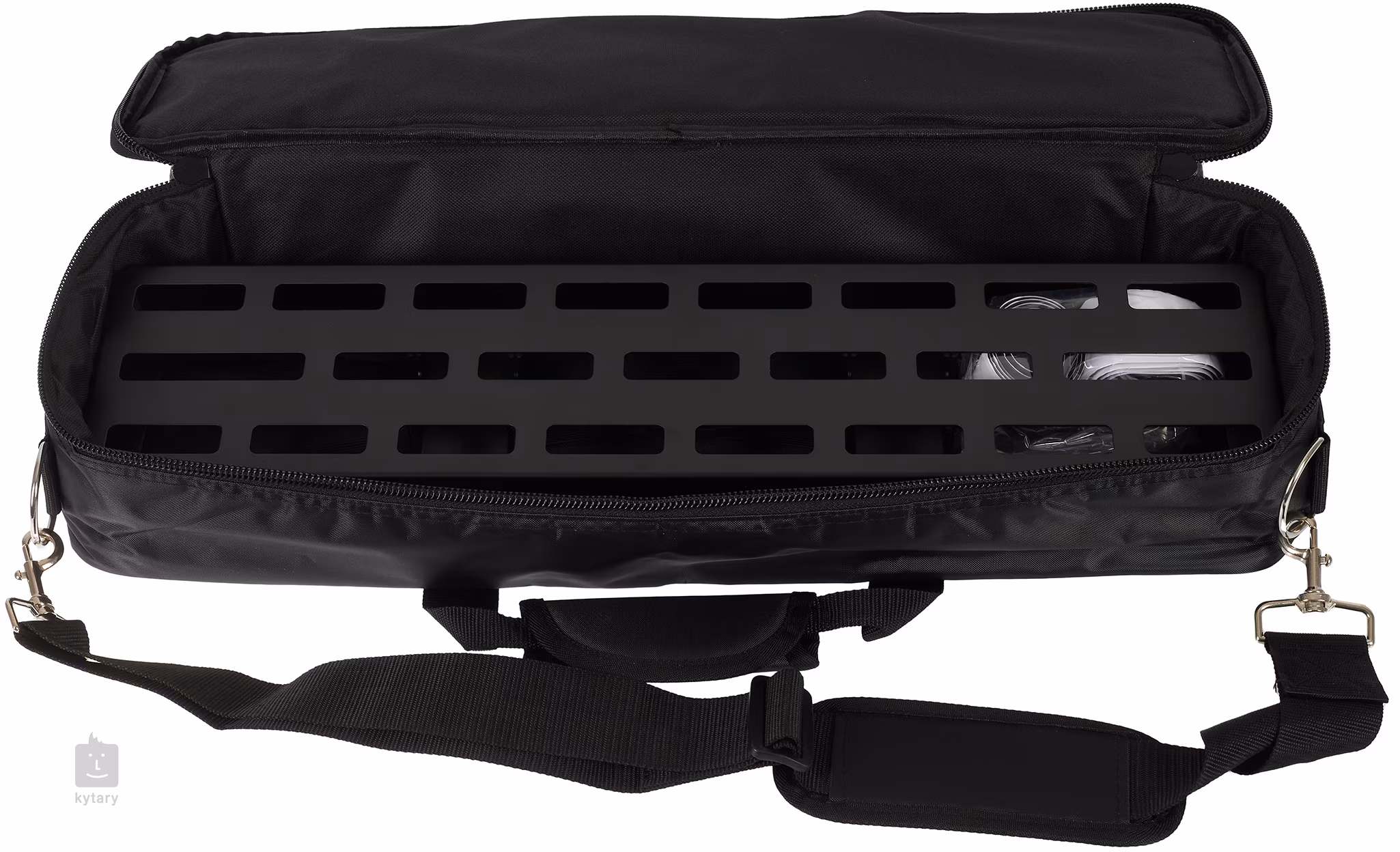 Pedalboard Rockboard DUO 2,2 with Gig Bag vychází z nového designu pedalboardů Rockboard/Warwick z roku 2018, Prioritou bylo zejména snížení váhy a zvýšení pevnosti a odolnosti, čehož bylo docíleno novou konstrukcí z jednoho kusu za studena válcovaného a nesvařovaného hliníku, Pedalboard bez problému pojme 5 až 9 pedálových efektů (v závislosti na jejich velikosti), Jeho šikovný design s rozšířenými sloty vám umožní používat upevňovače pedálů Rockboard QuickMount plates v různých tvarech a velikostech (nejsou součástí balení, okamžité řešení představuje přibalená páska se suchým zipem), jednoduše uchytit na spodní stranu pedalboardu napájecí multiadaptér a efektivně organizovat kabely a propojky,