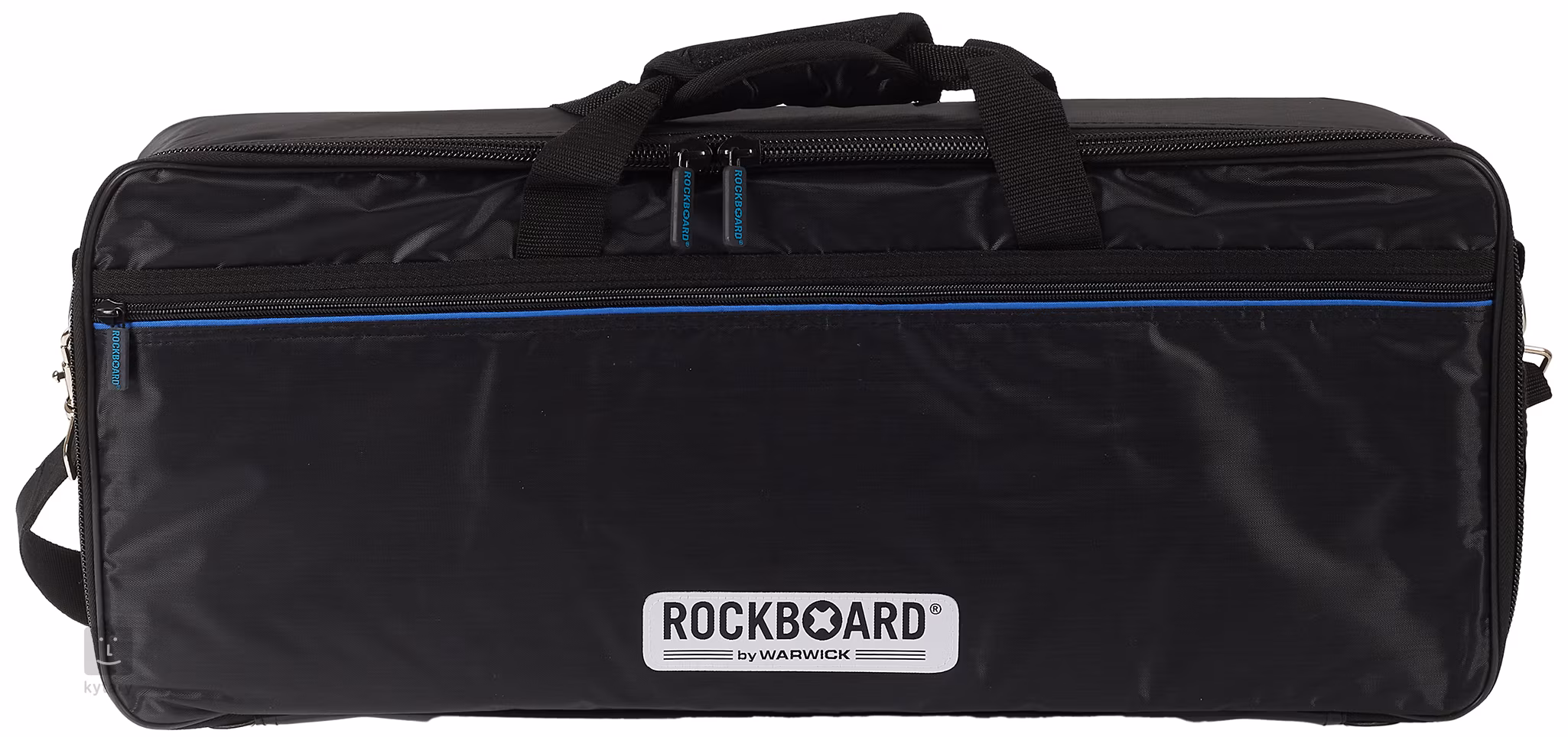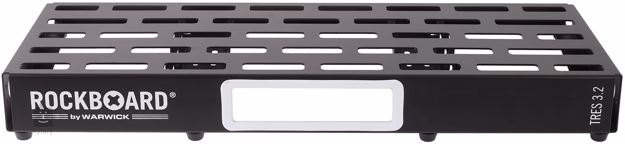 Pedalboard Rockboard TRES 3,2 with Gig Bag vychází z nového designu pedalboardů Rockboard/Warwick z roku 2018, Prioritou bylo zejména snížení váhy a zvýšení pevnosti a odolnosti, čehož bylo docíleno novou konstrukcí z jednoho kusu za studena válcovaného a nesvařovaného hliníku, Pedalboard bez problému pojme 7 až 12 pedálových efektů (v závislosti na jejich velikosti), Jeho šikovný design s rozšířenými sloty vám umožní používat upevňovače pedálů Rockboard QuickMount plates v různých tvarech a velikostech (nejsou součástí balení, okamžité řešení představuje přibalená páska se suchým zipem), jednoduše uchytit na spodní stranu pedalboardu napájecí multiadaptér a maximálně efektivně organizovat kabely a propojky (i díky prostoru pro montáž zásuvných modulů/patchbayů Rockboard MOD),