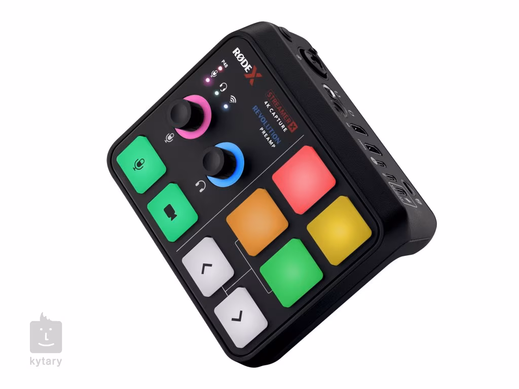Rode Streamer X je vybaven přehlednými podsvícenými ovládacími prvky, které vám umožňují snadno nastavit hlasitost, ztlumit zvuk nebo přepínat mezi různými audio vstupy. Tento intuitivní design vám poskytuje přesnou kontrolu nad zvukem, aniž byste museli se zrakem hledat po ovládacích prvcích.