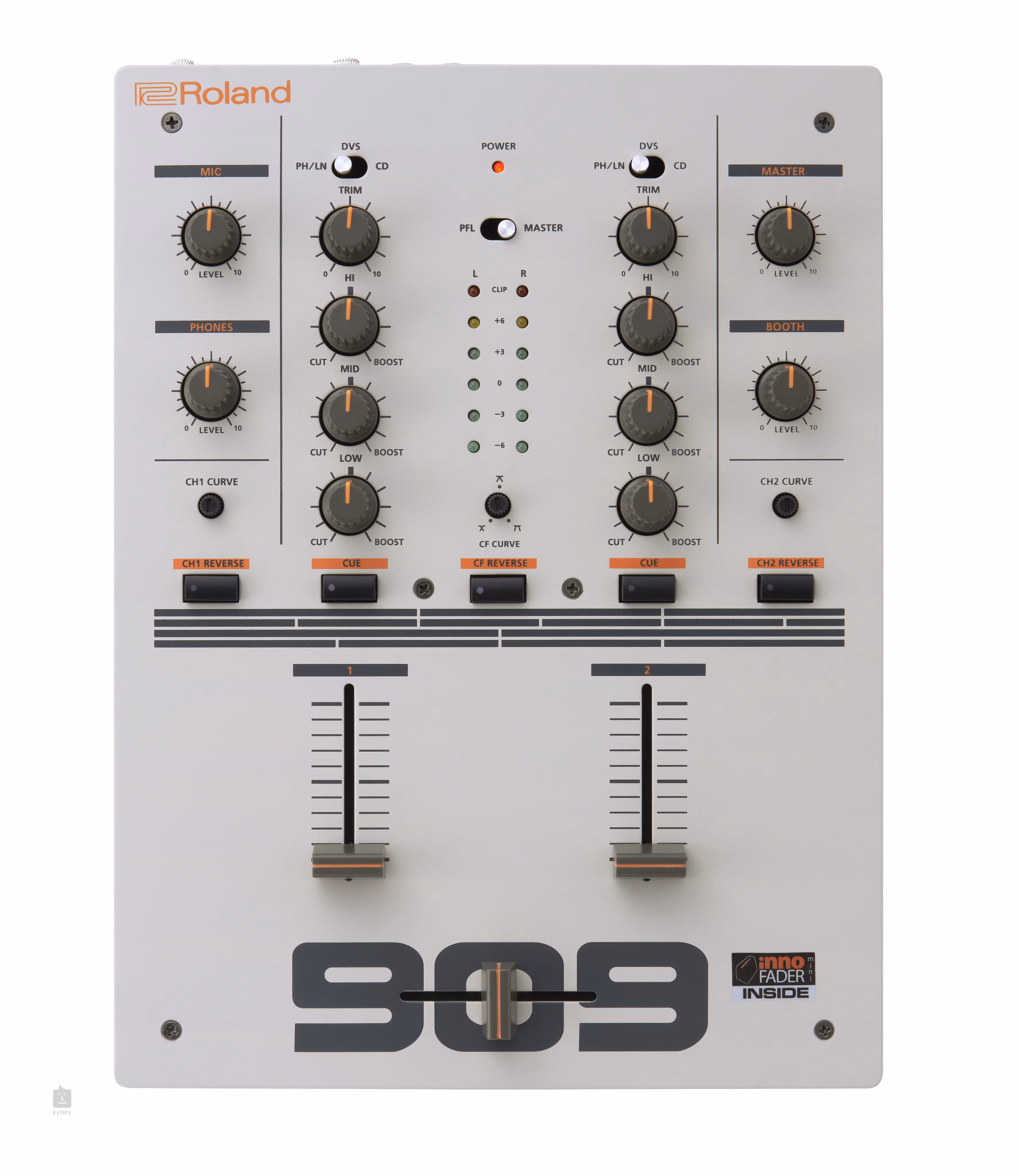 Profesionální DJ analogový, dvoukanálový mixpult s 909 speciálním lakem, innoFADER crossfaderem, DVS výstupem a třípásmovými korekcemi pro každý kanál. Crossfader má nastavitelnou klřivku.