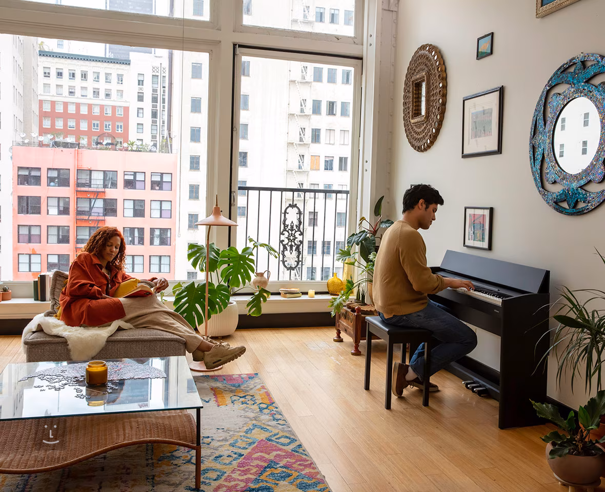 Roland F107 je ideálním digitálním pianem pro začínající a lehce pokročilé hráče, kterým nabízí vše, co budou k seznámení s nástrojem potřebovat – zvuk a design vycházející z profesionálního nástroje Roland F701 a dalších vlajkových modelů firmy Roland, Bluetooth pro připojení k výukovým aplikacím, USB port pro připojení k PC a 200 cvičebních písní i klasický trojpedál.