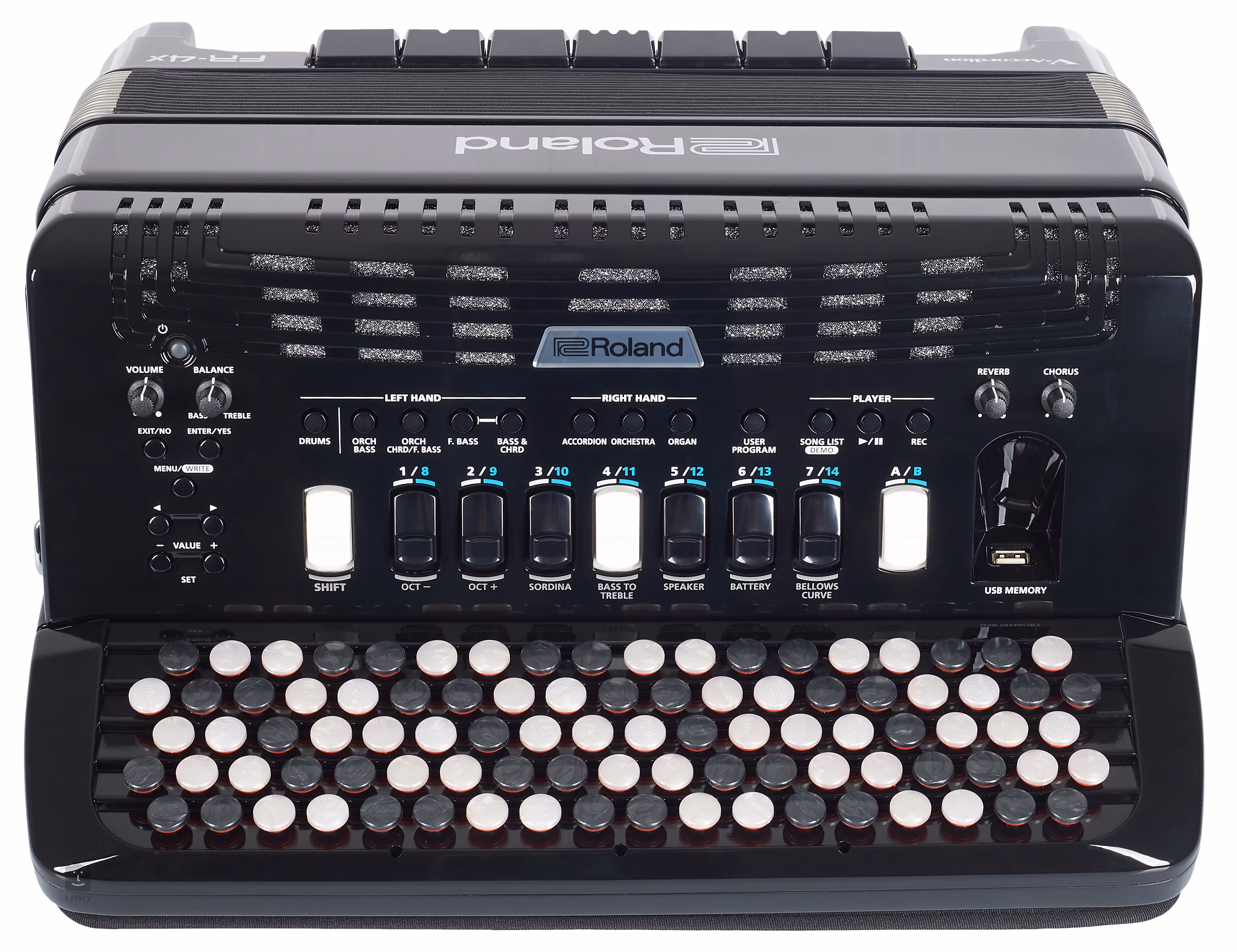 Roland přichází s novými modely digitálních akordeonů FR-4X (s klaviaturou) a FR-4XB (s knoflíky), které nabízí autentický pocit ze hry známý z klasických akordeonů a zároveň skvělé zvuky převzaté z vlajkové lodi Roland – FR-8XB. Zaujmou nízkou hmotností, kompaktní velikostí, tlakově citlivými měchy a skvělým ozvučením. Vyberte si z široké nabídky akordeonových zvuků nebo na něj hrajte jako na smyčce, mussette, varhany nebo basu. Zvuk můžete vylepšit pomocí zabudovaných efektů jako reverb, rotary nebo chorus a k doprovodu použít integrované rytmy. Samozřejmostí je široká analogová i digitální konektivita, takže digitální akordeony z této řady lze použít ve zkušebně, studiu, při živém hraní nebo v MIDI set-upu. Všude obstojí na jedničku.