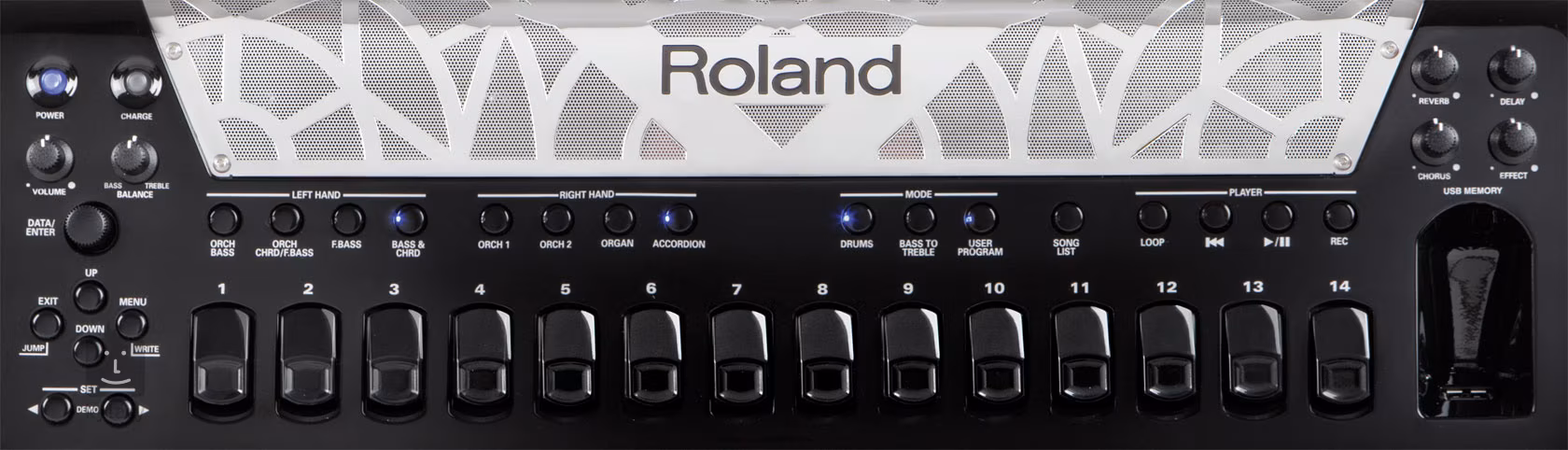 U skvělého nového knoflíkového modelu FR-8x dovedl Roland k dokonalosti synergii hratelnosti tradičního akordeonu a výkonu moderní digitální techniky. Nejnovější vrchol třídy knoflíkových V-akordeonů je nabušený vlastnostmi a novinkami na jejichž vývoji se podíleli špičkoví hráči světa. Přináší dosud nevídanou výrazovost a všestrannost pro každého akordeonistu. Inovativní technologie Dynamic Bellows Behavior nabízí reálnou odezvu měchů akustického akordeonu. Rozšířená zvuková sada, čtyři výkonné multi-efekty, vestavěný looper a mnohé další představují bezednou truhlici pokladů usnadňující dynamický hudební projev. Hladké prolínání špičkové technologie se známým tradičním projevem akustického nástroje přináší prostřednictvím FR-8x novou éru kreativní svobody pro hráče, ať se nachází kdekoliv.