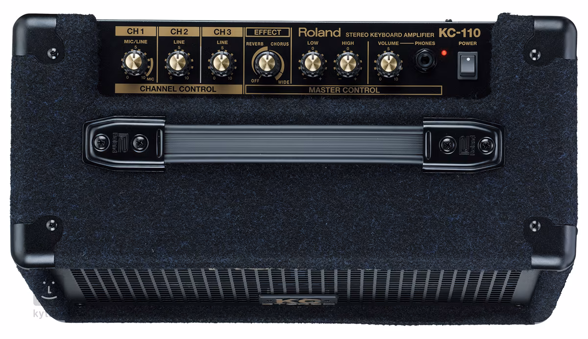 KC-110 je první, plně stereo klávesové kombo profi kvality, které je napájené osmi AA bateriemi. Můžete je tak vzít kamkoliv, zapojit a pokochat se bohatým, prostorovým zvukem, který nese pečeť značky Roland. Výkonné 30W (15W + 15W) stereo kombo se dvěma 6.5"reproduktory a dvěma tweetery. Vysoce kvalitní stereo digitální efekty: reverb, chorus, Wide chorus, a EQ, za/vypínání efektů lze ovládat volitelným nožním spínačem. Tři nezávislé kanály s ovládáním hlasitosti. Mikrofonní/nástrojový vstup, dva stereo vstupy, stereo AUX vstup, stereo linkové výstupy a sluchátkový výstup. Možnost montáže na speaker stojan (stojan není součástí balení). Vestavěný naklápěcí stojan. Odnímací cartridge s bateriemi pro jejich jednoduchou výměnu.