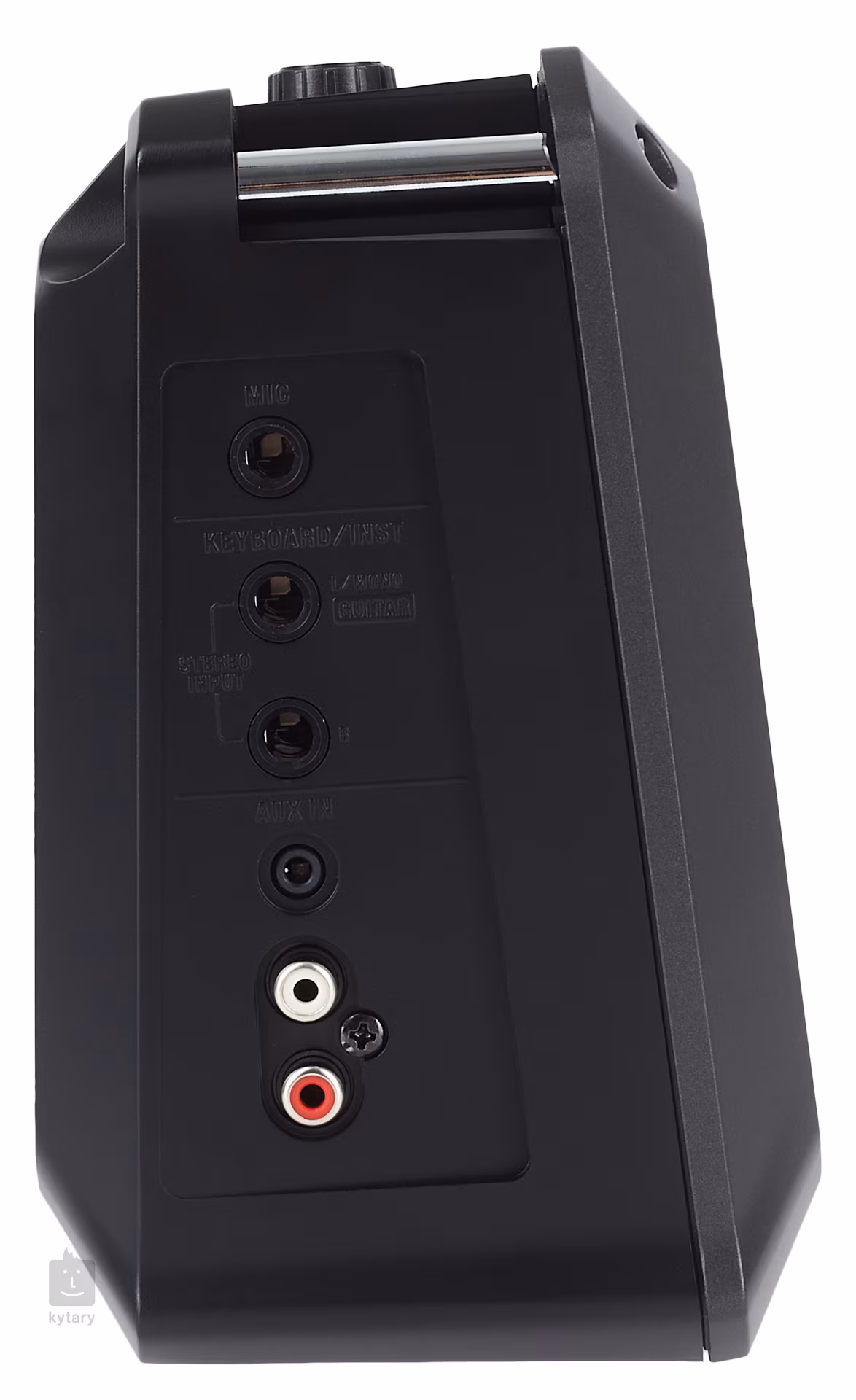 Levá strana aparátu krom hlavního vypínače a konektoru pro adaptér obsahuje sluchátkový výstup. Na opačné straně jsou vstupní konektory, tedy mikrofonní vstup, stereo nástrojový vstup a Aux-In.
