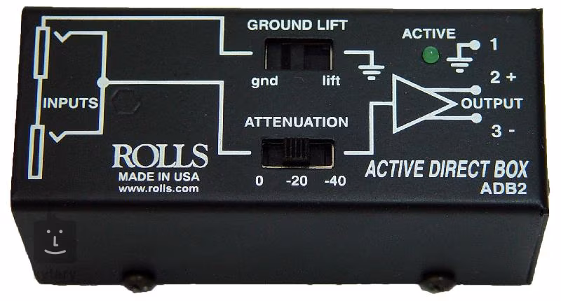 ADB2 je aktivní DI Box napájení přímo phantomem. Nabízí dva paralelní 1/4 vstupní Jacky a jeden výstupní XLR konektor. Samozřejmostí je Ground Lift, navíc nabízí i 3 polohový přepínač útlumu, kde můžete volit mezi atenuací 0, -20 nebo -40 dB.