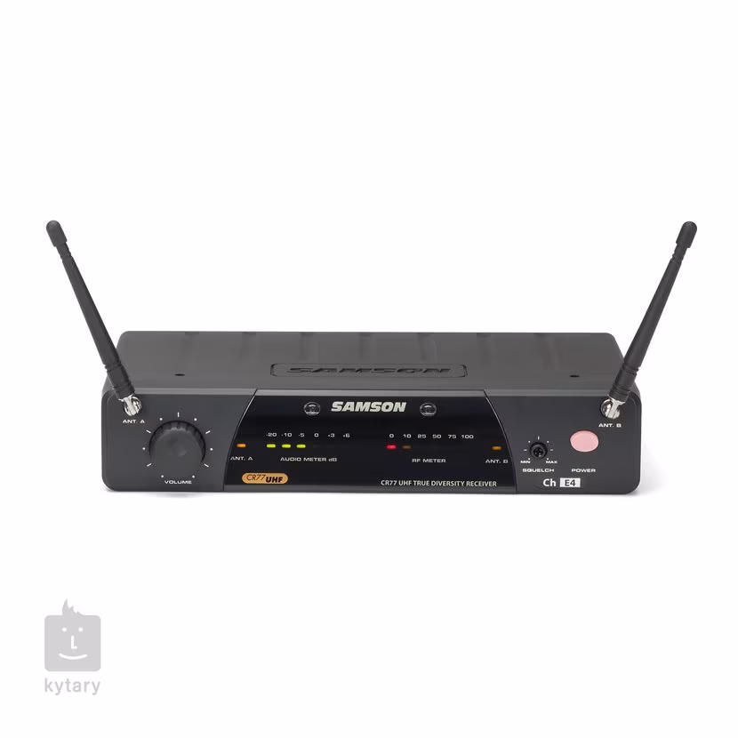 Přijímač CR77 nabízí dvě interní antény a intuitivní ovládání pro okamžité připojení bezdrátového mikrofonu. Přední strana přijímače disponuje LED ukazately RF signálu a hlasitosti, ovladačem Volume a potenciometrem Squelch pro ovládání rozsahu mikrofonu a následnou eliminaci okolního ruchu. Zadní strana nabízí XLR a Jack výstup pro připojení do dalšího zařízení a přepínač výstupního signálu Mic/Line.