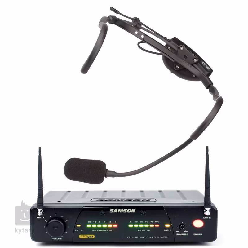 bezdrátový systém UHF pro cvičitele, nebo zpěv ? miniaturní vysílač AH1 s kondenzátorovým hlavovým mikrofonem QV10 ? vysílač je umístěn přímo na hlavě-odpadá nutnost body packu u pasu, výdrž baterie 14 hodin ? přijímač: CR77, skutečná diverzita, světelná idikace RF a Audio signálu na předním panelu, symetrický XLR a nesymetrický Jack výstup ? adapter v ceně ? možná montáž do racku s držákem RK55
