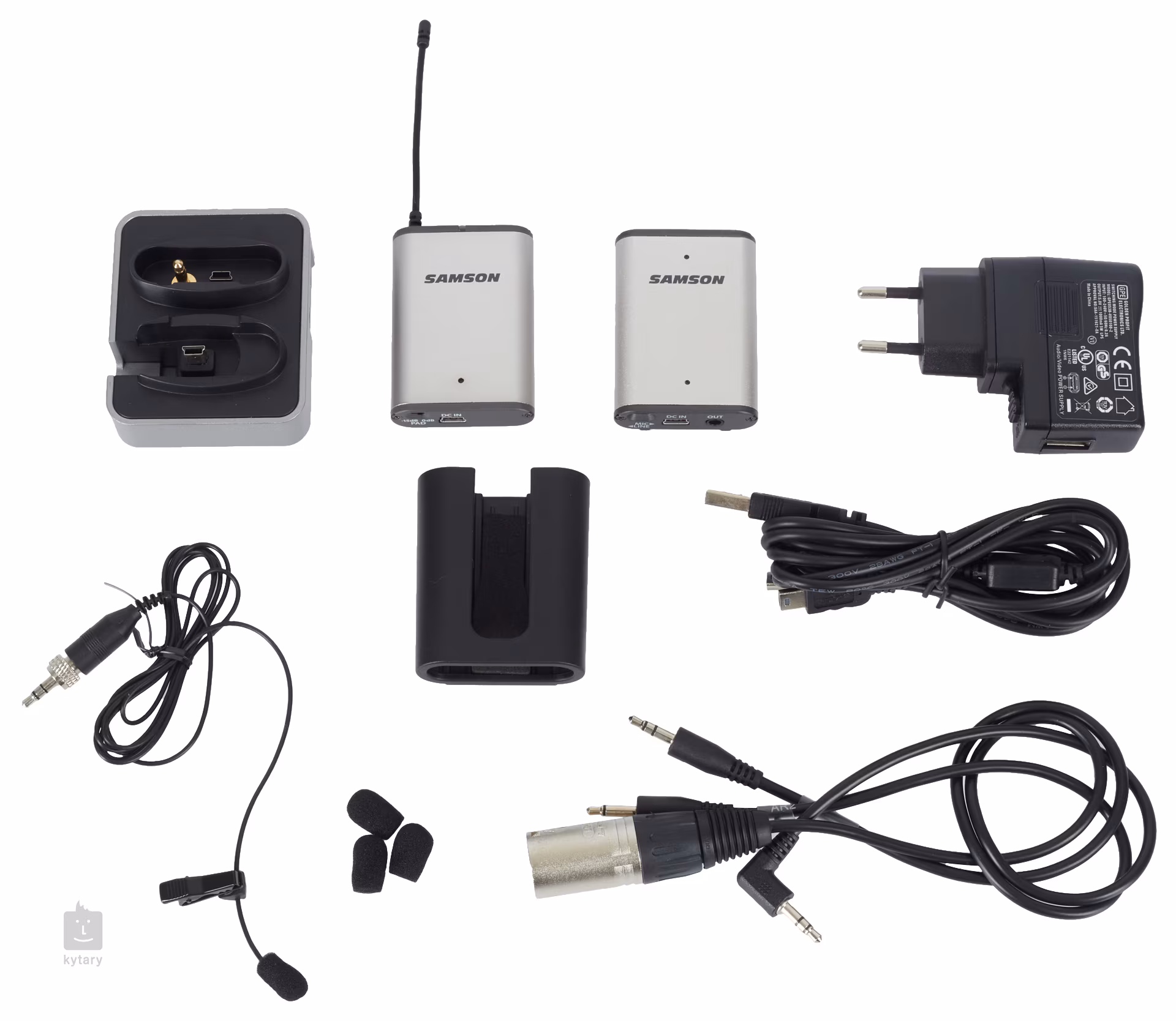 Signál z klopového mikrofonu s všesměrovou charakteristikou přenáší vysílač AL2, který lze zavěsit například za opasek. K ovládání UHF vysílače slouží pouze jedno multifunkční tlačítko a funkce jako Power, Mute, Volume indikuje vícebarevný LED ukazatel. Vícebarevnou LED diodou je osazený i přijímač AR2, která slouží k monitoringu RF, režimu Mute, stavu signálu a k jeho případnému přetížení. Obě zařízení mají USB konektory pro připojení k dokovací stanici a následnému dobití lithium-iontových baterií, které vydrží v provozu až 8 hodin. Samotná stanice je osazená audio výstupem (Jack 3,5mm), takže můžete s přijímačem pracovat nerušeně dál. Součástí výbavy jsou mimo jiné i držák a kabel pro připevnění přijímače ke kameře či digitální zrcadlovce a přímý záznam zvuku.