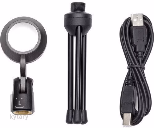 Dále je obsahem balení stolní stojan, USB kabel a nahrávací software AudioDesk od firmy MOTU.