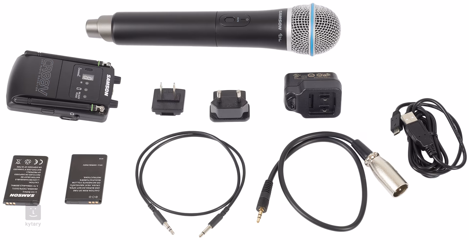 Součástí balení je přijímač CR88V, vysílač CH88, mikrofon Q8, nabíječka, nabíjecí baterie, USB kabel, kabel 3,5 mm Jack - XLR, kabel Jack 3,5 mm - Jack 3,5 mm, kufřík, kamerový držák a klipy.