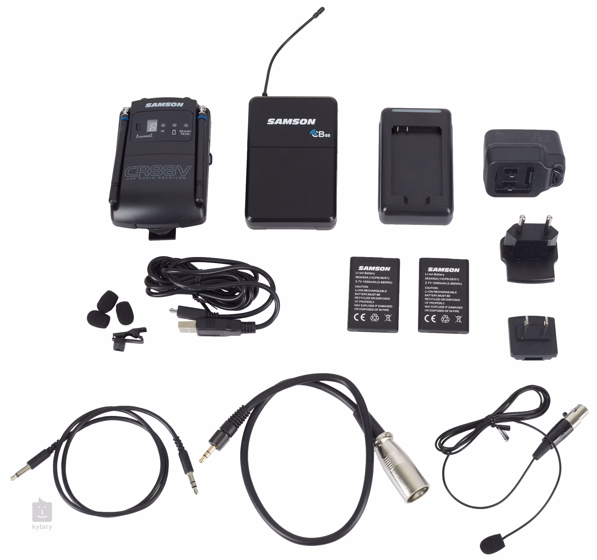 Součástí balení je přijímač CR88V, vysílač CB88, mikrofon LM10, nabíječka, nabíjecí baterie, USB kabel, kabel 3,5 mm Jack - XLR, kabel Jack 3,5 mm - Jack 3,5 mm, kufřík, kamerový držák a klipy.