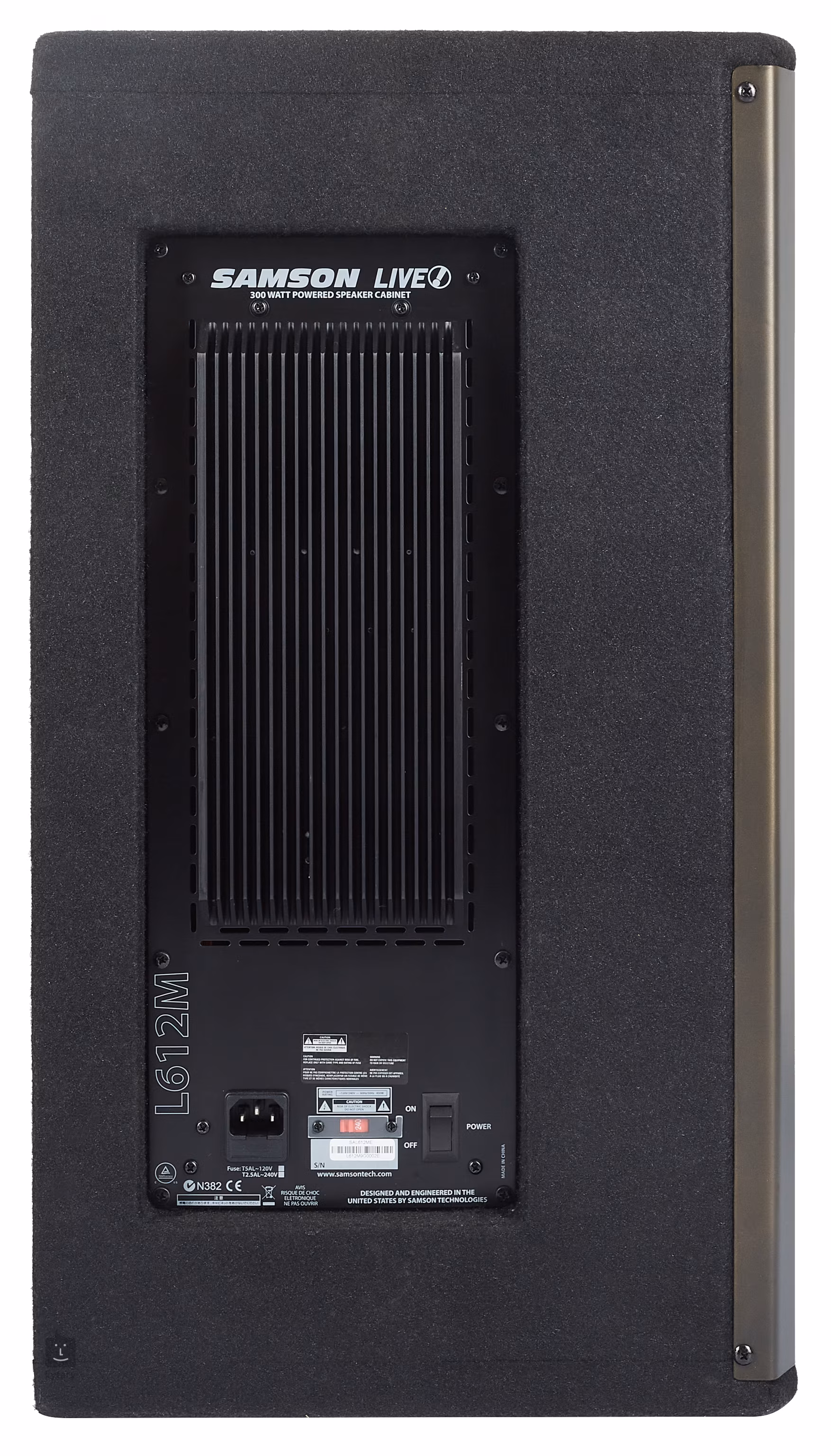 Uvnitř dvoupásmového Samson LIVE! 612M se skrývá 12" basový reproduktor s možným výkonem až 300W (LF 250W + HF 50W), 44 mm compression driver umístěný v jednopalcové horně s vyzařovacím úhlem 60 x 90 stupňů. Oba reproduktory potom mají vlastní obvod s ochranným limiterem. Zadní strana disponuje XLR vstupem vlastním ovladačem hlasitosti. Dále zde naleznete dvoupásmový ekvalizér pro úpravu výstupního signálu. Reproduktor lze propojit s dalším PA pomocí XLR výstupu.
