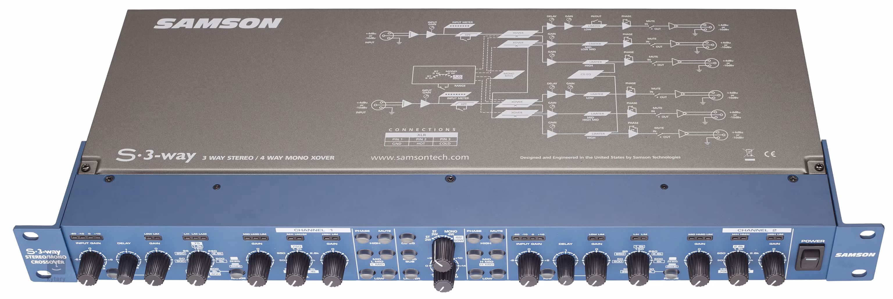 3-kanálový stereo/mono crossover, režimy: stereo 2, nebo 3-kanálový provoz, mono: 4-kanálový provoz, low, mid a high výstupy s +-6dB přepínačem citlivosti, mute a phase spínač pro každý výstup, ovladač zpoždění pro nízké kmitočty, variabilní treshold limiter provoz, low, mid a high výstupy s +-6dB přepínačem citlivosti, mute a phase spínač pro každý výstup, ovladač zpoždění pro nízké kmitočty, variabilní treshold limiter.