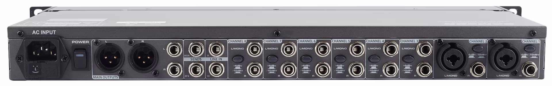 Mixážní pult lze propojit s mikrofonem, nástrojem nebo hudebním přehrávačem. Na přední straně se nachází osm oddělených sekcí pro každý kanál, kdy každý kanál disponuje čtveřicí potenciometrů na Volume, Balance, Monitor a EFX, nebo tlačítkem Mute. Dále zde naleznete potenciometry pro výstupní hlasitost a výstupy pro monitory nebo sluchátka se separátními ovladači hlasitosti pro detailní monitoring. Navíc můžete zeslabit signál z hudebního přehrávače až o 10dB, takže váš hlas bude zřetelný a srozumitelný. Vzadu naleznete vstupy pro připojení mikrofonů, hudebních přehrávačů a nástrojů, dále potom výstupy pro monitory, efektové jednotky, zesilovače a další PA.