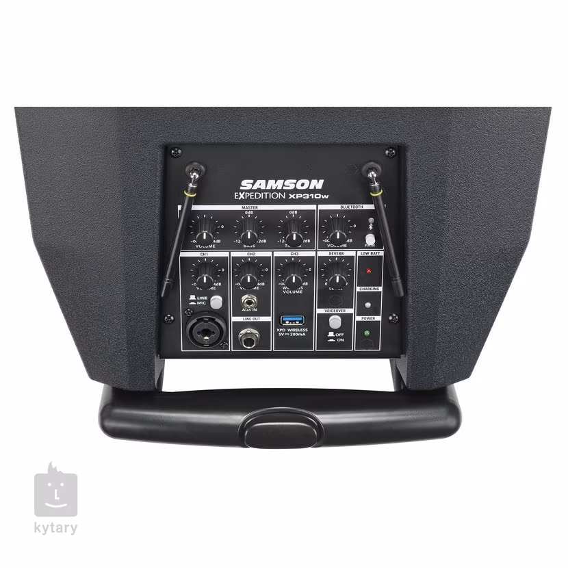 Vestavěný čtyřkanálový mix nabízí jeden vstup s kombinovaným konektorem XLR/Jack pro připojení symetrického mikrofonního signálu, nebo signálu s linkovou úrovní a vstup s konektorem Jack 3.5 mm pro připojení externího zařízení MP3, mobilního telefonu, tabletu atd. Každý kanál je vybaven vlastním ovladačem hlasitosti. Možnosti boxu XP310w je možné dále rozšířit připojením bezdrátového setu z řady Samson XPD. Samson XP310w má zabudovaný USB port pro připojení setu XPD, který lze zakoupit samostatně. Lze tak získat absolutně mobilní zařízení s připojeným bezdrátovým setem bez nutnosti zajišťovat napájení přijímače ze setu XPD.