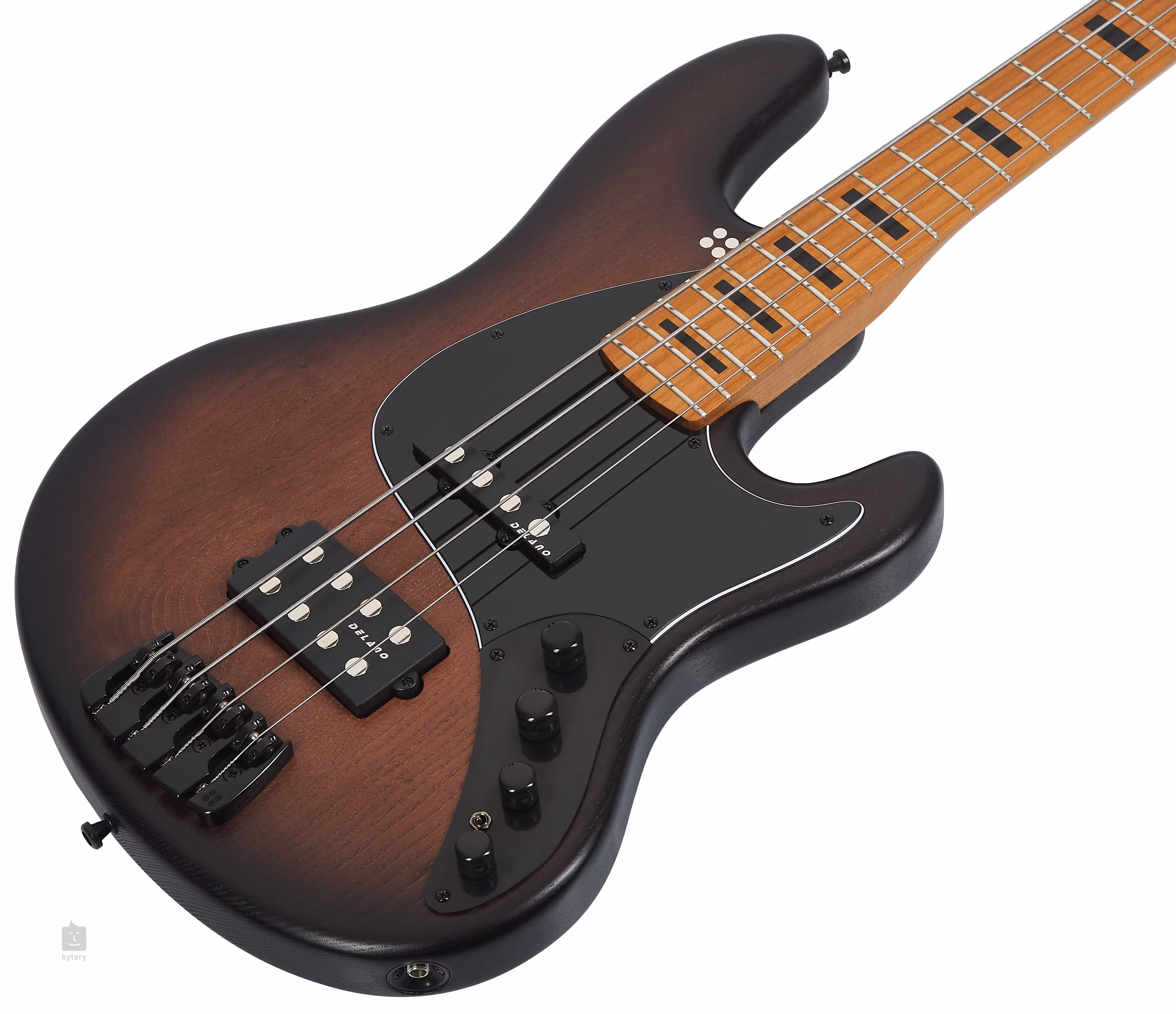 Tělo baskytary je zhotoveno z olše. Javorový krk s pohodlným “C” profilem a hmatník nástroje jsou vyrobeny z pečeného javoru (roasted maple) - díky tepelné úpravě je dřevo stabilnější a zároveň získává atraktivní nazlátlý vzhled. Orientaci na hmatníku usnadňují černé polohové bloky.