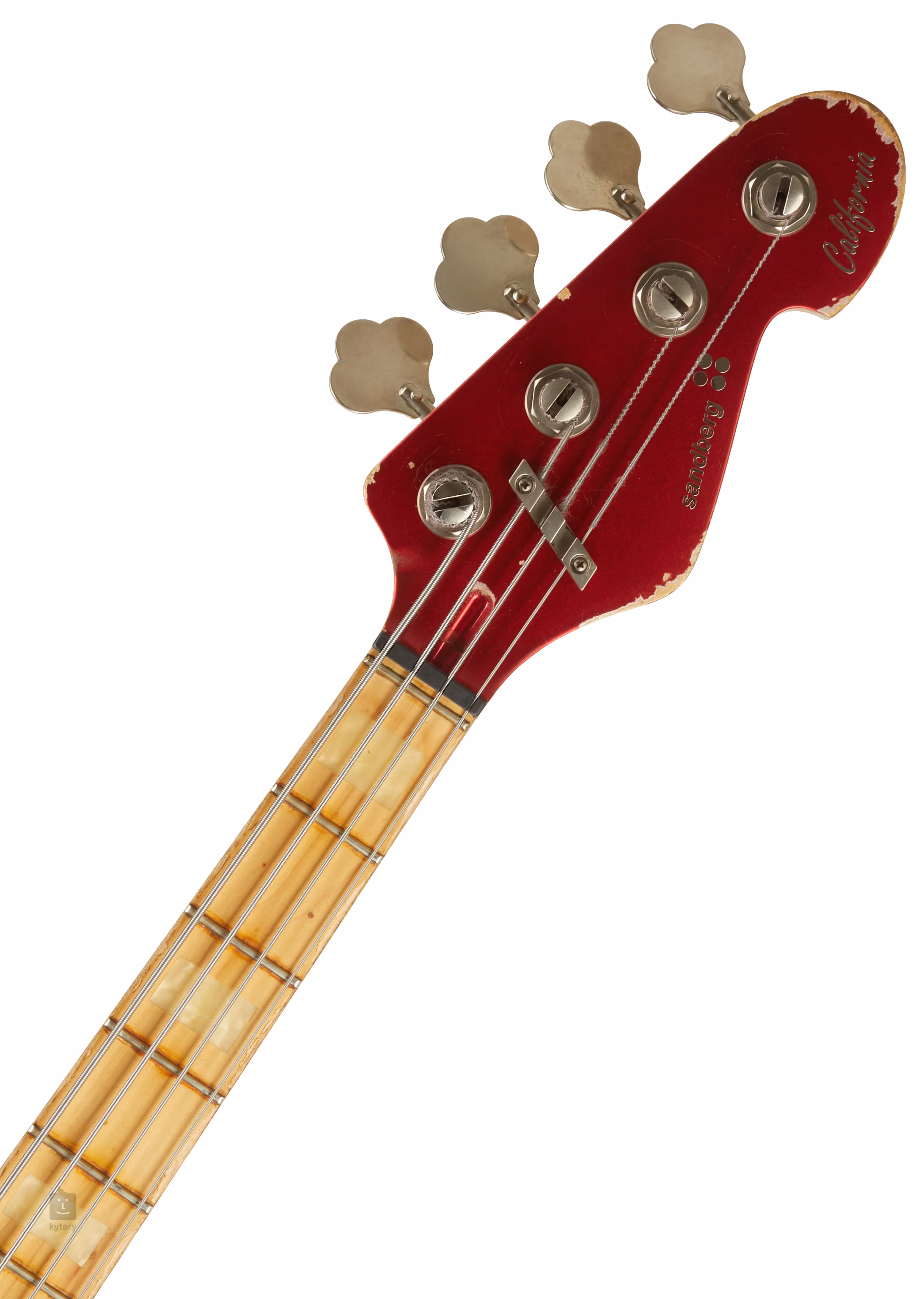 Olšové tělo baskytary California TT4 Passive HCR RDM MFB BKIW MHS zdobí barevná úprava Metallic Red a finiš s výraznými prvky umělé patiny v podobě škrábanců, oprýskaného laku a jiných bojových šrámů. Krk s pohodlným “C” profilem a hmatník osazený dvaadvaceti pražci jsou zhotoveny z javoru. Díky přišroubování k tělu pomocí šesti šroubů drží krk pevně ve zcela přesné poloze. Orientaci na hmatníku usnadňují polohové značky.