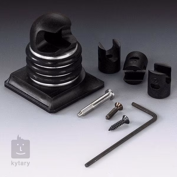 • Integrated height adjustment with a rotating rubber ring device - hence usable for every tremolo brand.