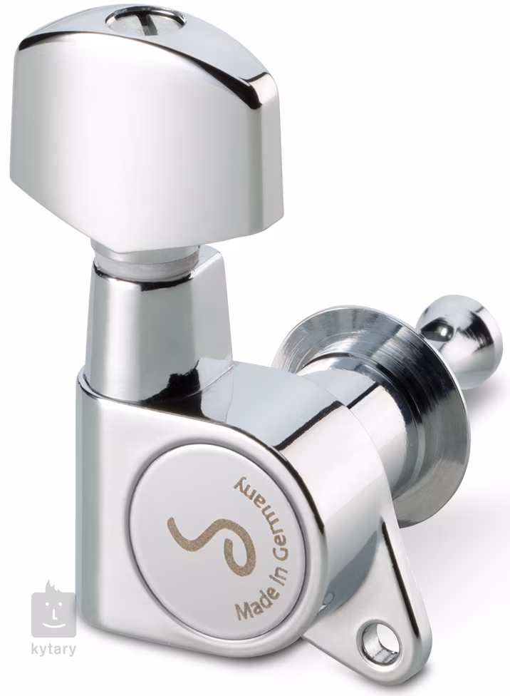 Kytarové ladící mechaniky Schaller M6 jsou tím nejlepším, co můžete svému nástroji dopřát. Vyznačují se prémiovou kvalitou, kterou je značka Schaller proslulá, elegantním designem a hladkým chodem. Model 135 se k hlavě kytary montuje pomocí jednoho šroubku – výběžek s otvorem pro šroubek je v tomto případě vychýlený úhlu 135°.