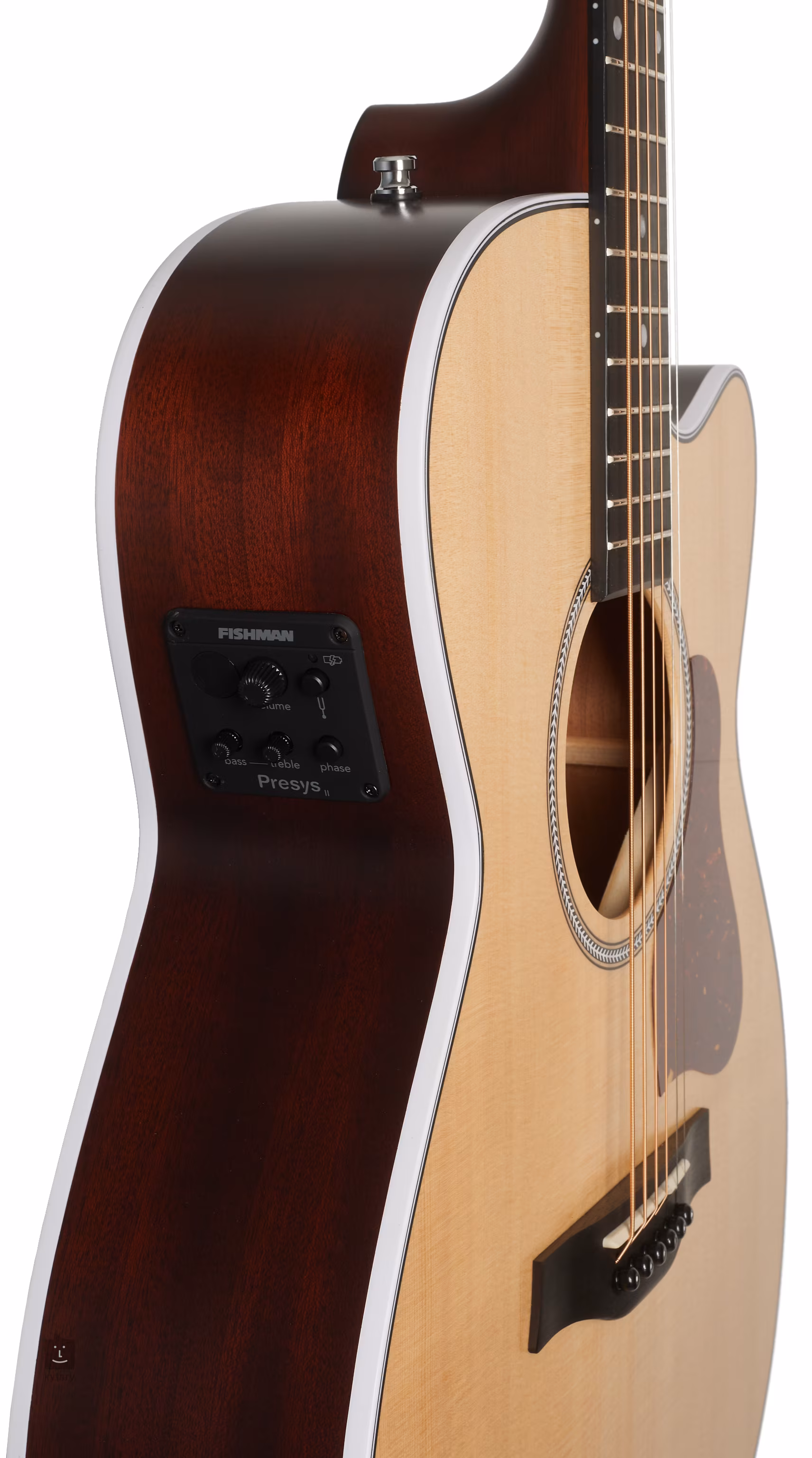 Model Maritime SWS CH CW Presys II s tělem velikosti Concert Hall stojí na pomezí mezi drobnými Parlory a většími Dreadnoughty. Jeho zadní desku, luby a hlavici zdobí barevná povrchová úprava Shadowed Burst. Zmíněné masivní materiály těla doplňuje mahagonový krk a hmatník z moderního kompozitního materiálu Richlite.
