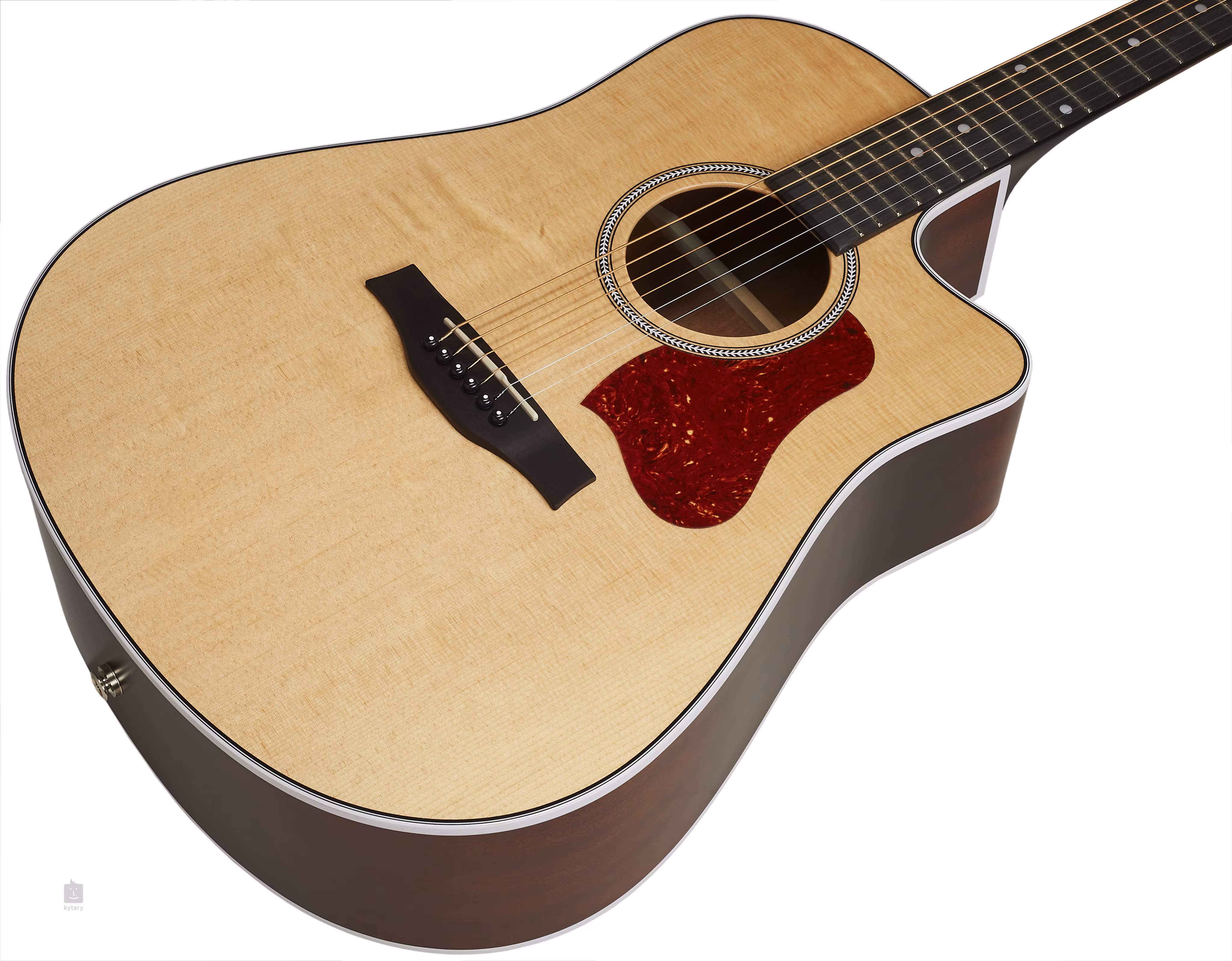 O ozvučení kytary se stará preamp Godin G1T s ovladačem hlasitosti, dvoupásmovým ekvalizérem a zabudovanou ladičkou. Stabilitu ladění zaručují uzavřené chromované mechaniky. Na druhé straně jsou struny uchyceny v ebenové kobylce. Stylový design nástroje podtrhuje pickguard z imitace želvoviny, zdobná rozeta, bílá lemovka a logo na hlavici kytary.