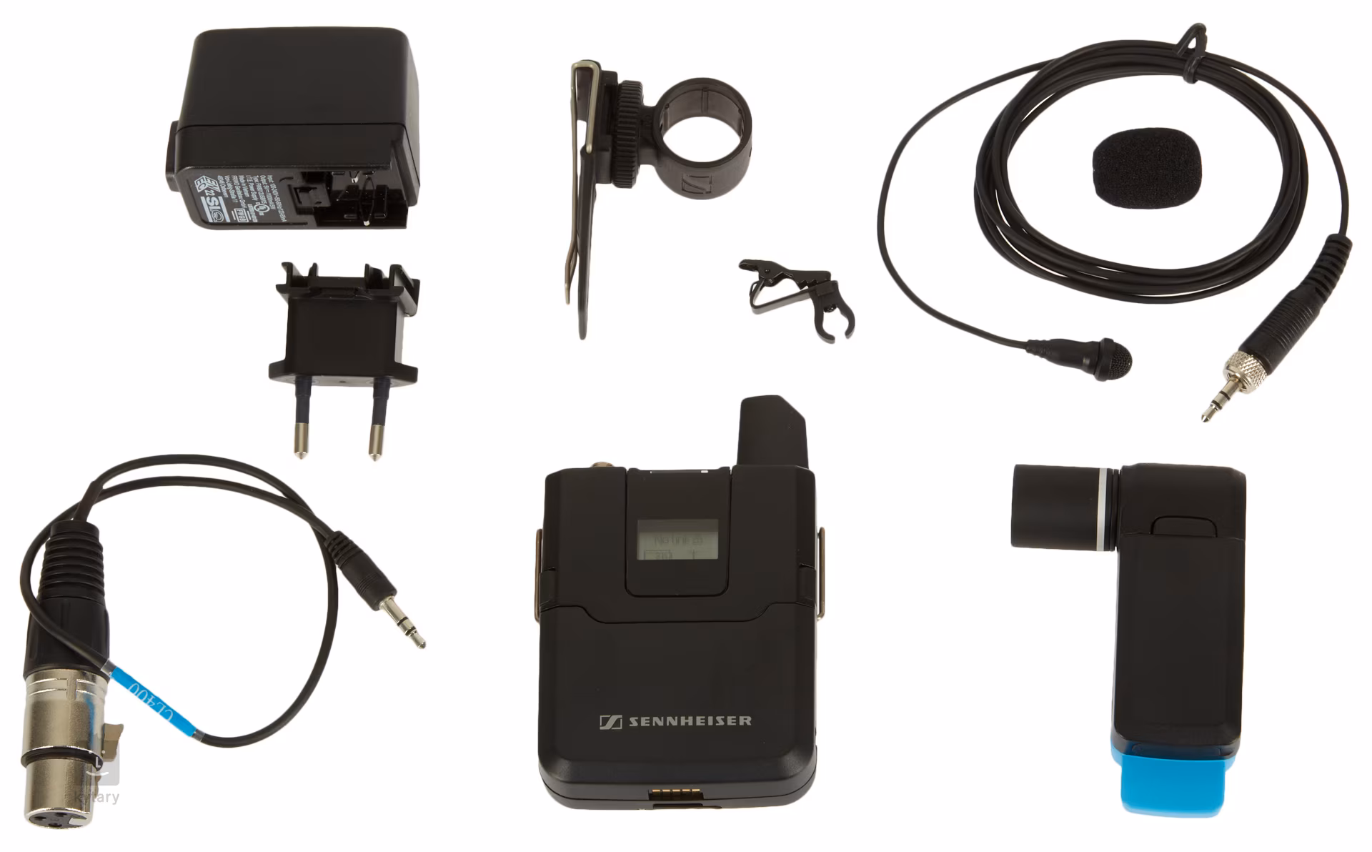 Součástí balení je kamerový přijímač AVX - EKP, vysílač / mikrofon AVX - SKM 835, baterie BA 10, klips, baterie BA 20, kamerový držák, kabel, klip na pásek, USB nabíječka, USB kabel a obal.