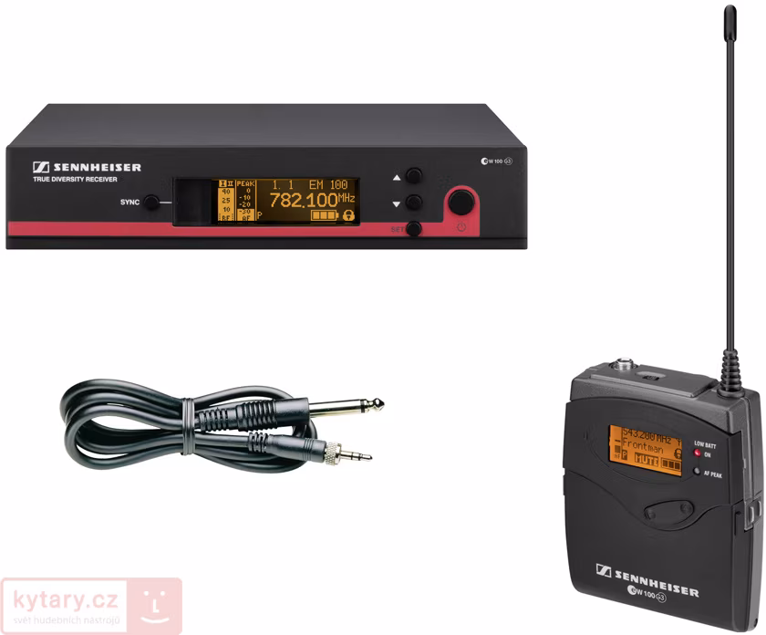 Bezdrátový systém pro hudební nástroje (např. kytary). Systém "umí" simulovat vliv kytarového kabelu na výsledný zvuk a obsahuje také kytarovou ladičku s údaji přímo na displeji. Hráči na basovou kytaru ocení kmitočtový rozsah, který začíná již na 25 Hz. Extrémně malý kapesní vysílač SK 100 G3 i rackový přijímač EM 100 G3 jsou vybaveny jednadvaceti skupinami frekvencí s dvanácti přímo přístupnými předvolbami pro okamžité použití. Připojte se a hrajte!