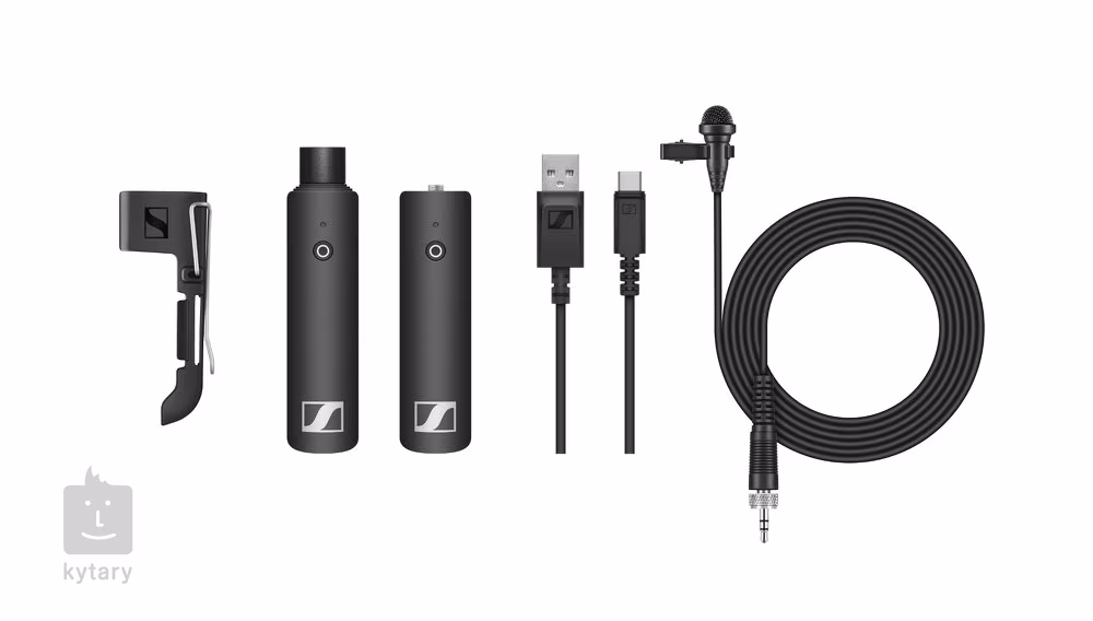 Součástí balení je přijímač EM XSw-D(XLR), vysílač SK XSw-D(3.5), klipsna, mikrofon ME 2-II a USB kabel.