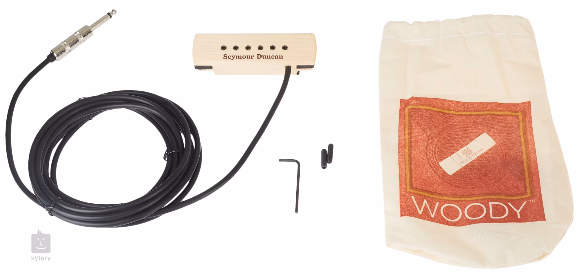 Snímače Seymour Duncan ze série Woody jsou určeny pro ozvučení akustických kytar, Jde o elektromagnetické snímače, které snadno upevníte do ozvučeného otvoru a ihned můžete začít hrát do aparatury nebo nahrávat, Kromě toho, že nabízí vysoce kvalitní zvuk, zaujmou i luxusním designem s dřevěným tělem, Woody lze nainstalovat na kytary, jejichž ozvučný otvor má průměr 94 až 100 milimetrů, Součástí je samozřejmě i kabel dlouhý 14 stop, tedy 4,25m, zakončený standardním kytarovým 1/4" jackem,