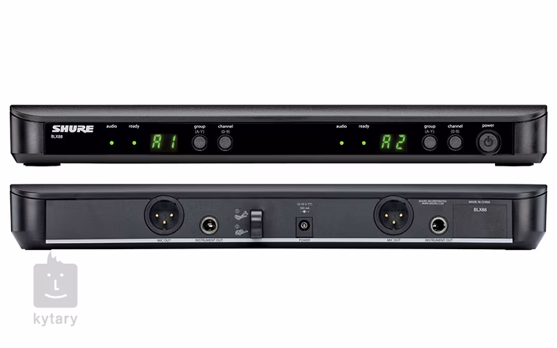 Shure BLX je základní bezdrátový systém s velmi rychlým a intuitivním nastavením, který je vhodný pro menší akce a prostory. Sada obsahuje duální přijímač a dva handheld mikrofony. BLX88 představuje duální bezdrátový přijímač s mikroprocesorem řízenou anténní diverzitou. Jeho ovládání je velmi intuitivní a jednoduché, funkce QuickScan rychle automaticky vyhledá nejlepší otevřenou frekvenci v případě rušení. Mikrofonní vysílač se zabudovanou dynamickou kapslí PG58 je vhodný pro zpěv. Na 2 AA baterie vydrží v provozu až 14 hodin. Součástí balení je přijímač BLX 88, 2x vysílač / mikrofon PG 58 a napájecí adaptér.