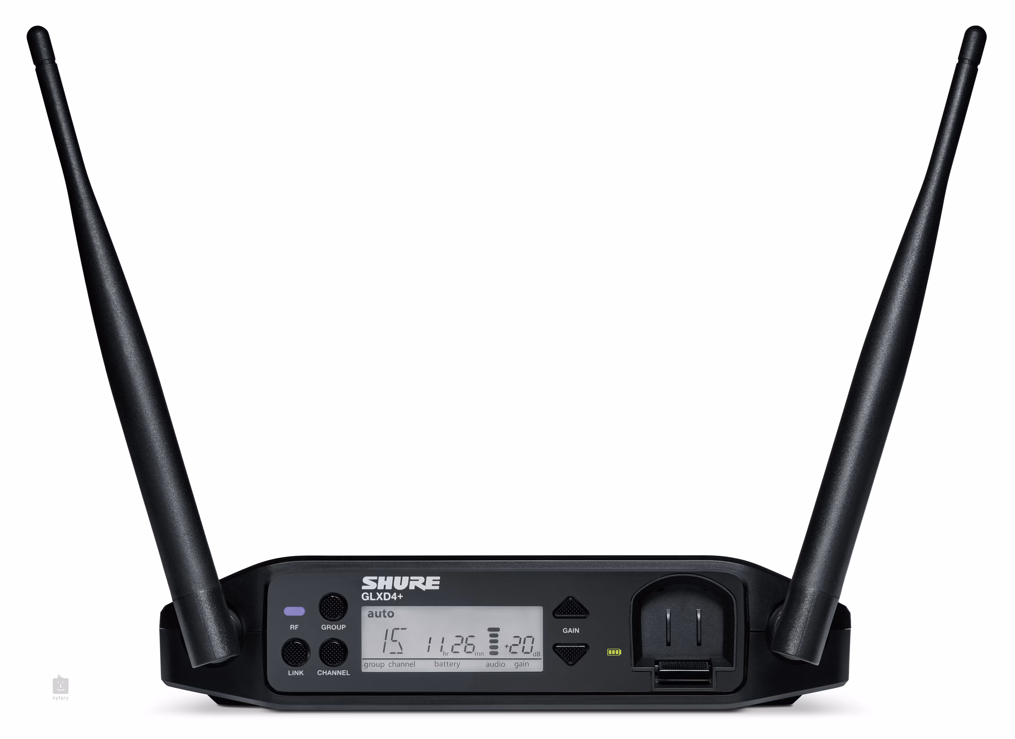 Přibalená li-ion baterie nabízí až 12 hodin provozu na jedno nabití a několik způsobů nabíjení. V kombinaci se samostatně prodejným příslušenstvím, tj. rackovým hubem Frequency Manager a aktivní bezdrátovou anténou, představují bezdrátové sety Shure GLX-D+ ideální řešení pro menší a středně velké instalace/koncerty/představení, kdy je zapotřebí větší množství kanálů (je možné provozovat až 11 rackových systémů zároveň).