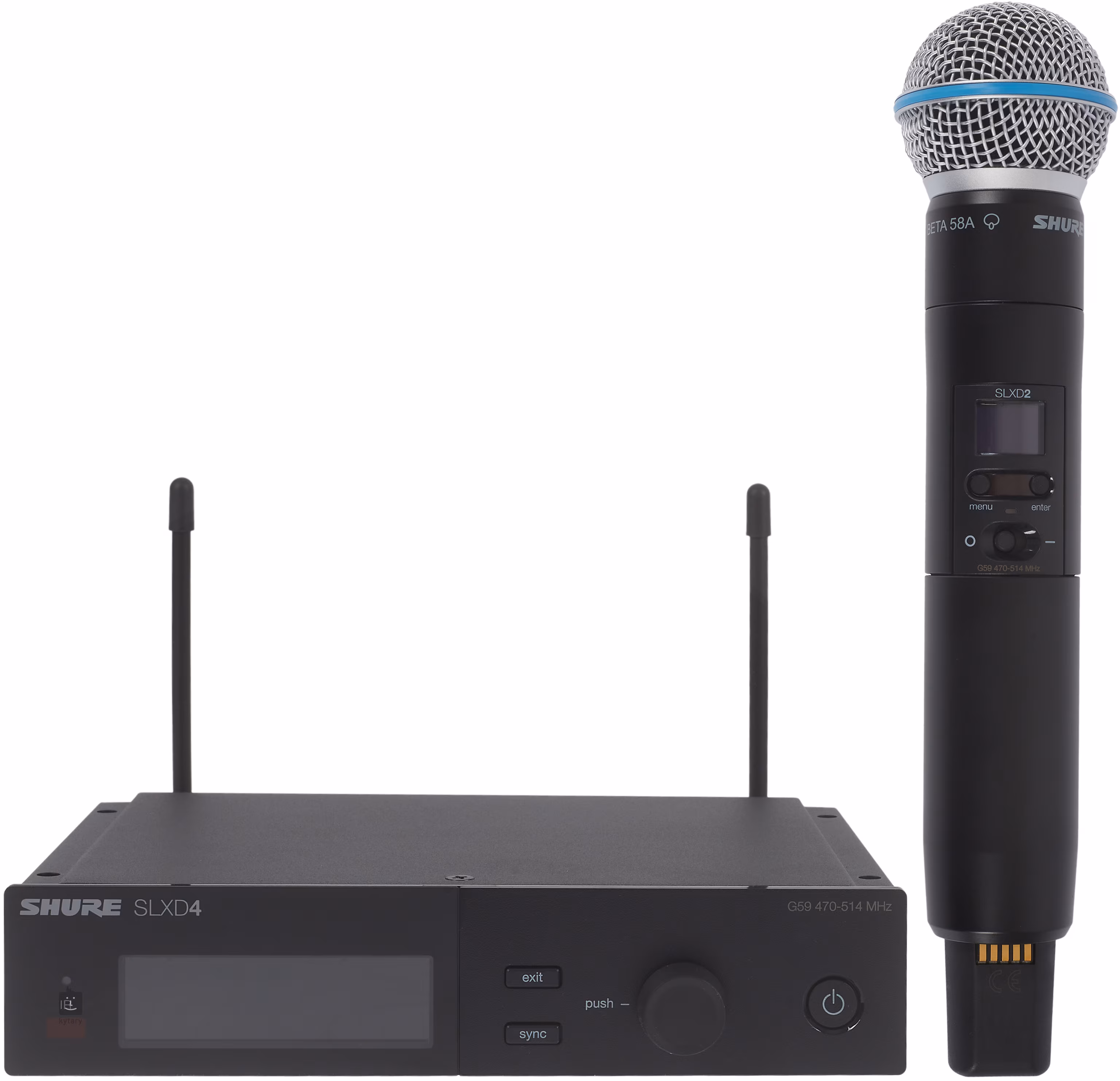 Shure SLXD24E/B58-G59 je vokální bezdrátový set s přijímačem SLXD4 a ručním mikrofonem Beta 58A, který je ideální pro živé vystupování i studiovou práci. Tento model operuje v pásmu 470 - 514 MHz.