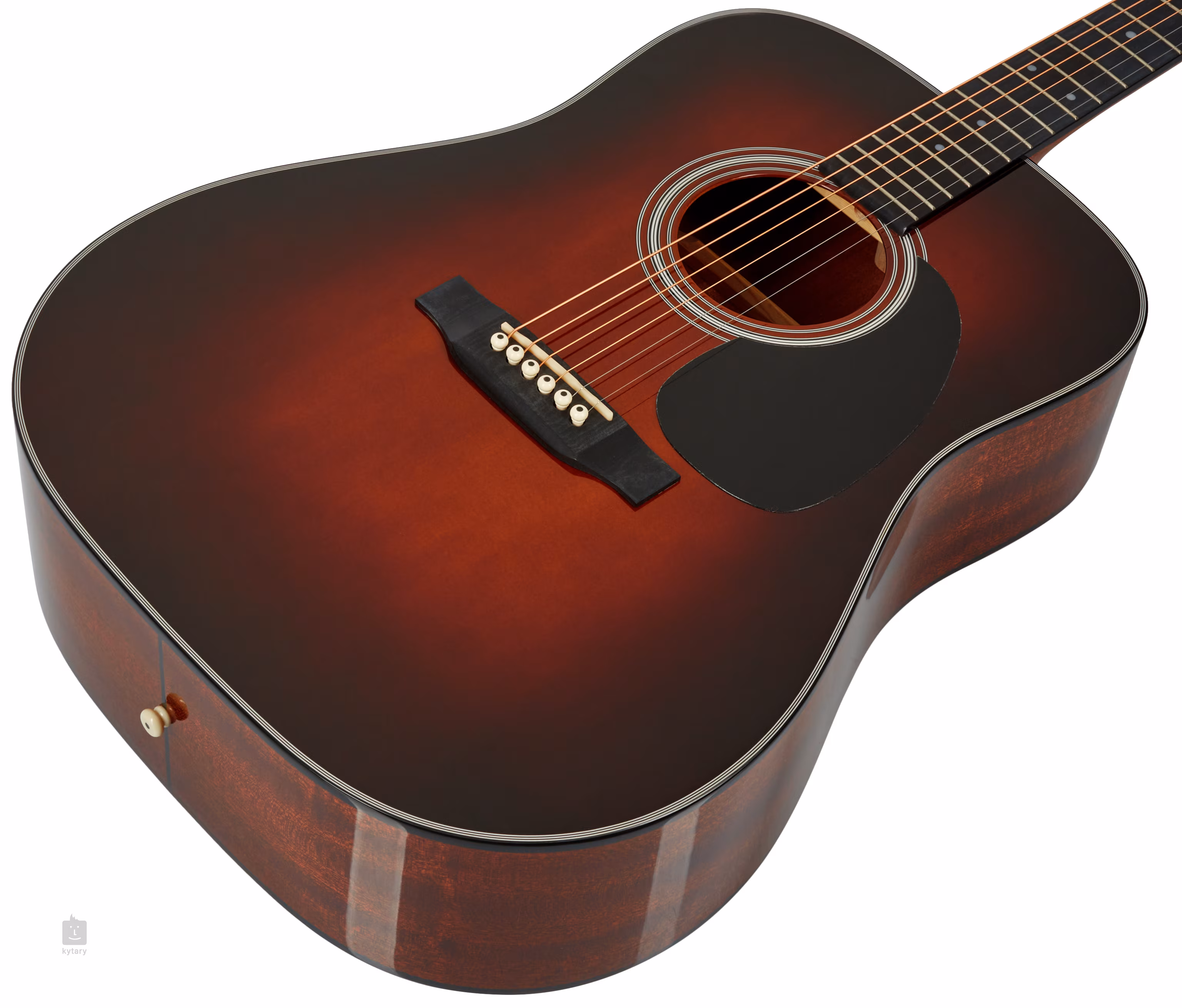 Sigma DM-1ST-SB je polomasivní elektroakustická kytara v populárním tvaru Dreadnought. Přední deska nástroje je zhotovena z masivního smrku Sitka, zadní deska a luby z překližovaného mahagonu. Tato často užívaná kombinace poskytuje kytaře vyvážený poměr průraznosti a zvukové vřelosti, nástroj tak představuje univerzálně dobrou volbu pro řadu hudebních stylů.