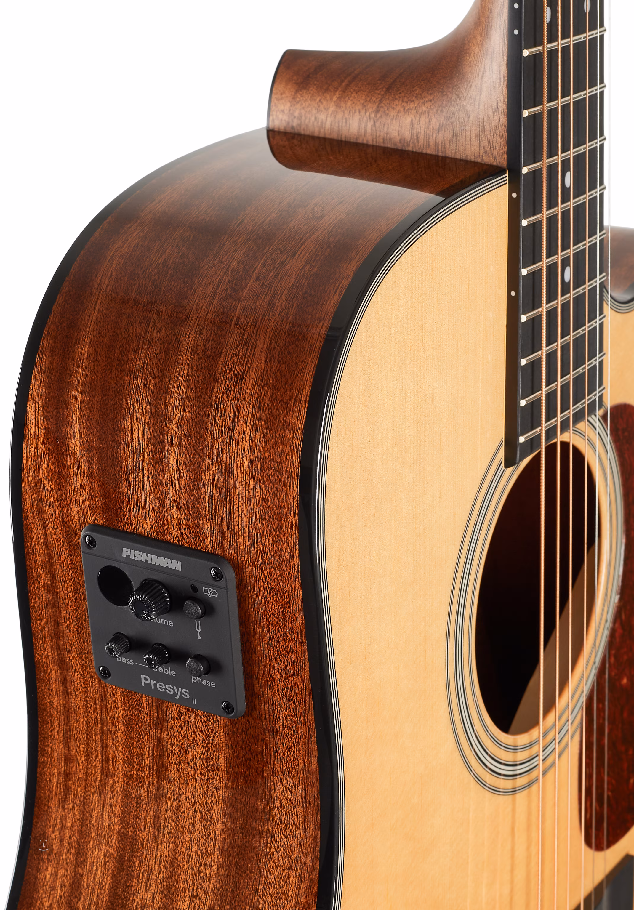 O ozvučení kytary se stará preamp Fishman Presys II instalovaný do lubu nástroje s ovladačem hlasitosti, dvoupásmovým ekvalizérem, funkcí Phase a integrovanou ladičkou.