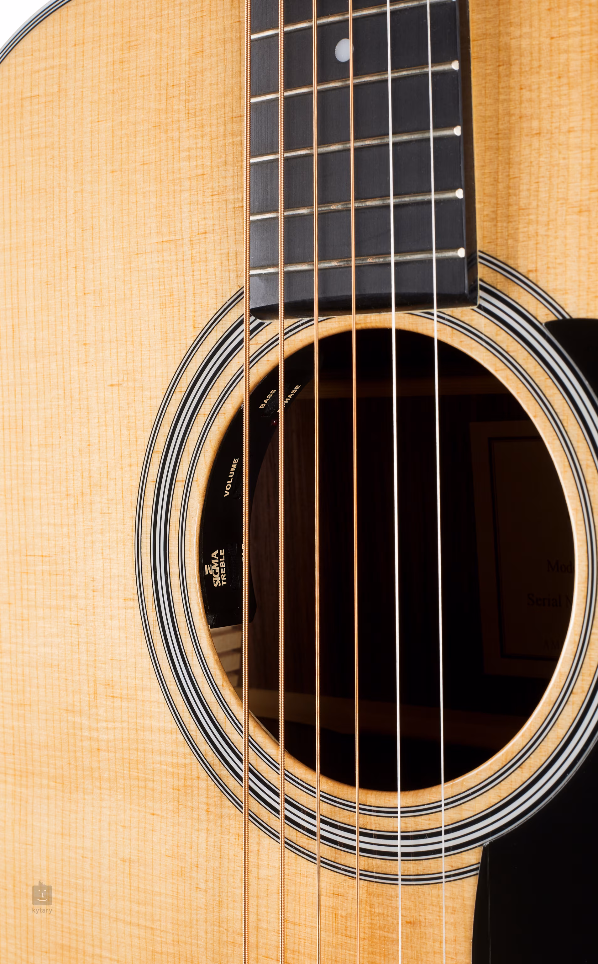 O ozvučení nástroje se stará firemní piezo snímač usazený v ozvučnici kytary. Struny jsou na jedné straně uchyceny v chromovaných mechanikách, na druhé v kobylce z micarty. Nultý pražec a kompenzované sedlo z kosti zaručují ideální přenos vibrací strun. Stylový design podtrhuje černý pickguard, zdobná rozeta, lemovka s černobílými linkami a logo na hlavici nástroje.