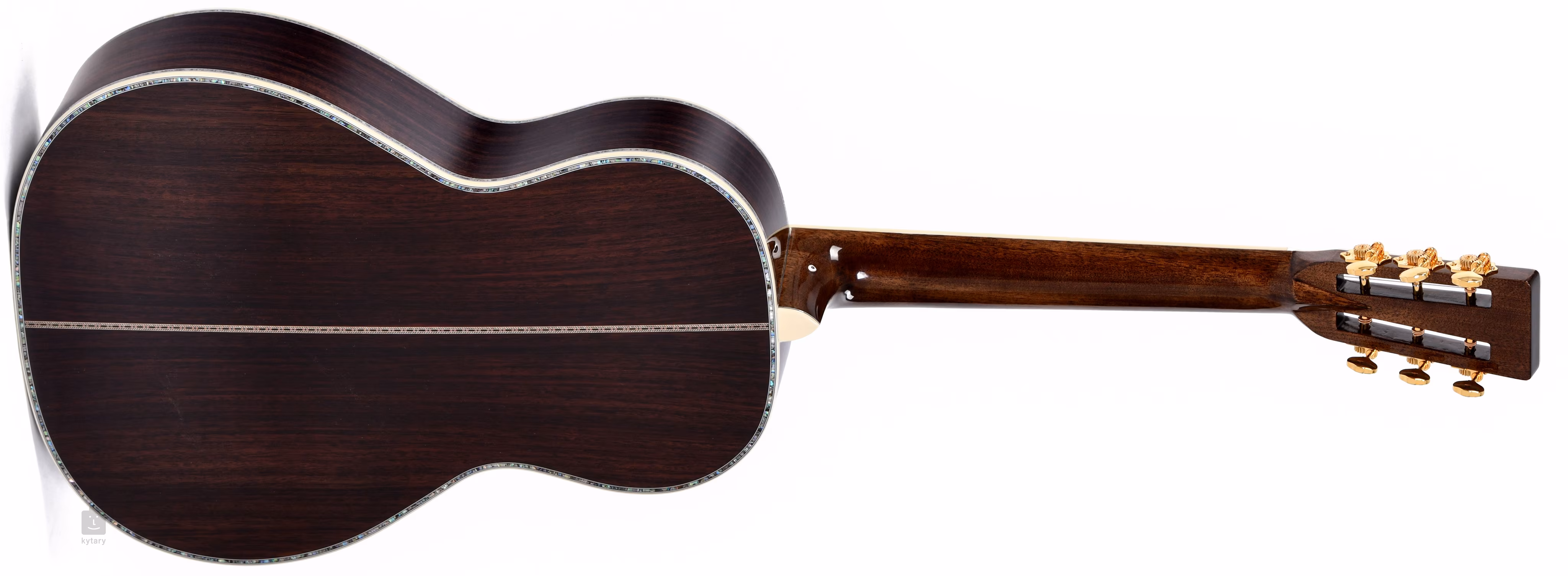 Struny jsou uchyceny v otevřených mechanikách Grover ve zlatém provedení s kolíčky Butterbean a ebenové kobylce. Nultý pražec a kompenzované sedlo z kosti zaručují ideální přenos vibrací strun. Luxusní zpracování podtrhuje rozleštěný lesklý finiš těla, oboustranná obvodová lemovka těla doplněná zdobnou výložkou topu i zad, dekorace zadní desky, perleťová rozeta a bohaté perleťové zdobení hlavice.