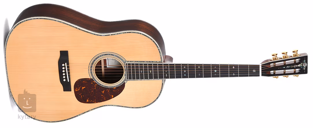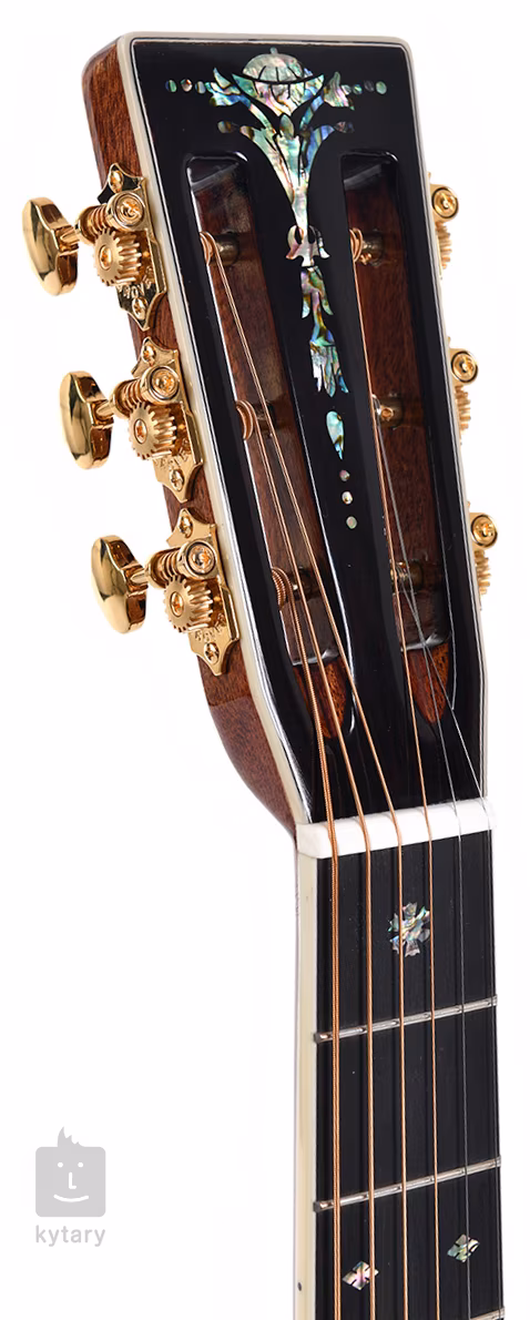 Struny jsou uchyceny v klasických “slotted” mechanikách značky\ Grover a ebenové kobylce. Nultý pražec a kompenzované sedlo z kosti zaručují ideální přenos vibrací strun. Pěkné zpracování podtrhuje obvodová lemovka těla z imitace slonoviny, výložka přední i zadní desky, pickguard z imitace želvoviny, hardware ve zlatém provedení a perleťový inlay na hlavici nástroje.