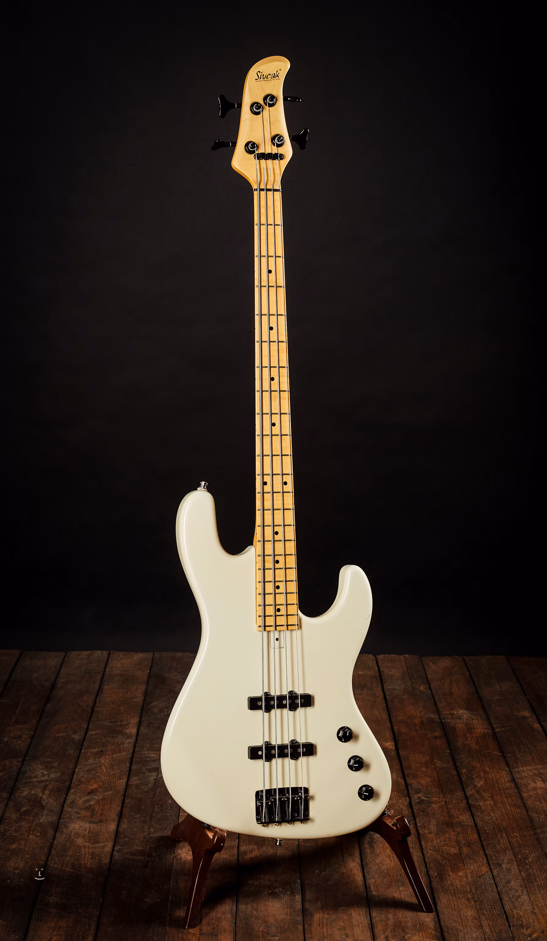 Baskytara od jednoho z nejžádanějších slovenských výrobců boutique nástrojů. Lehký, ergonomický jazz bass v krémově bílém provedení s černým hardwarem.