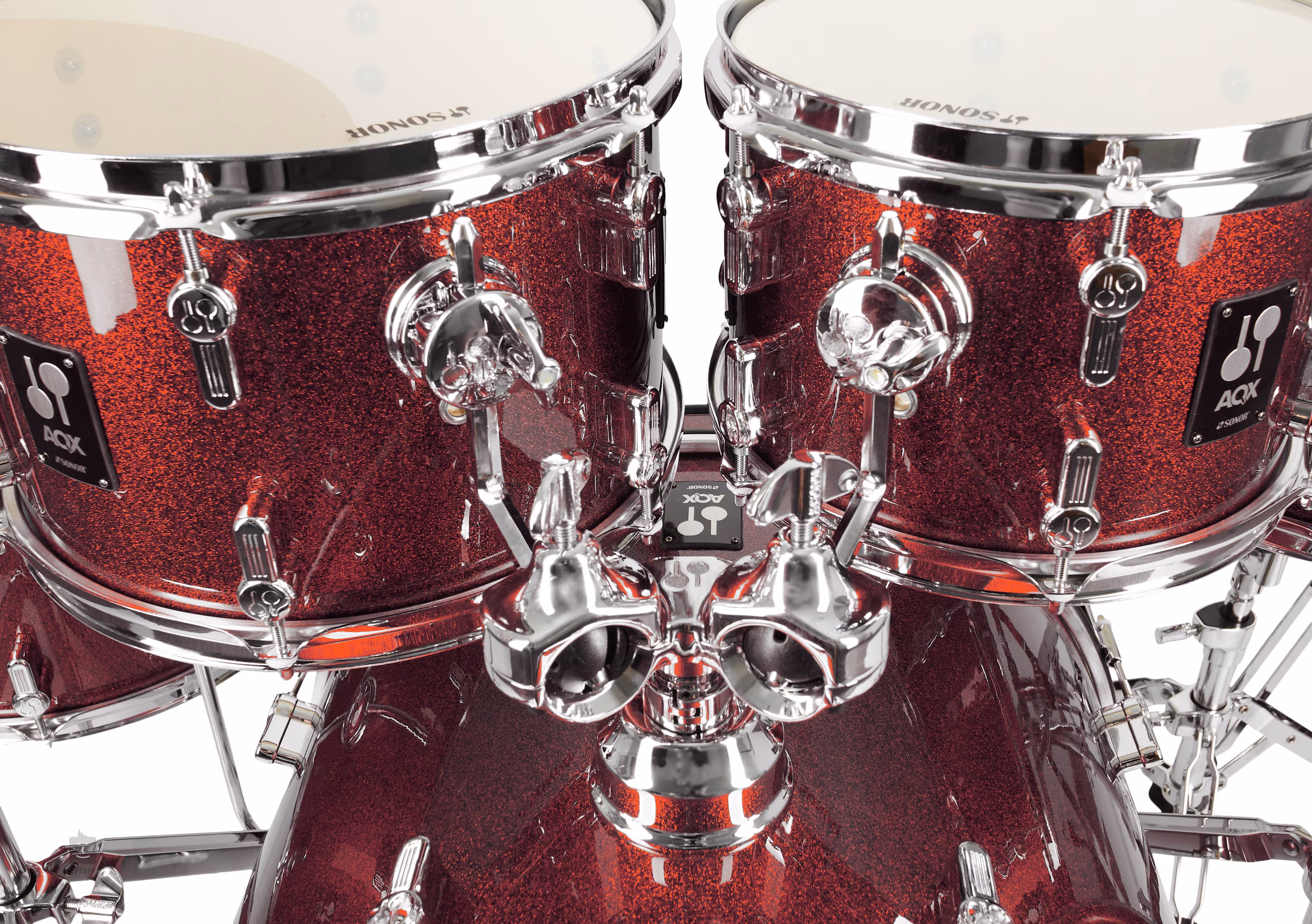 Série AQX je ideální pro začínající bubeníky. Devítivrstvé topolové korpusy (7,2 mm) poskytují jasný tón s attackem. Stylová třpytivá povrchová úprava upoutá na první pohled. V balení je sada bronzových činelů B8 (14" hi-hat, 16" crash, 20" ride). Basový buben je osazen tlumenými blánami. Součástí je kvalitní hardware: stojany na činely, hi-hat, snare a pedál k basovému bubnu.