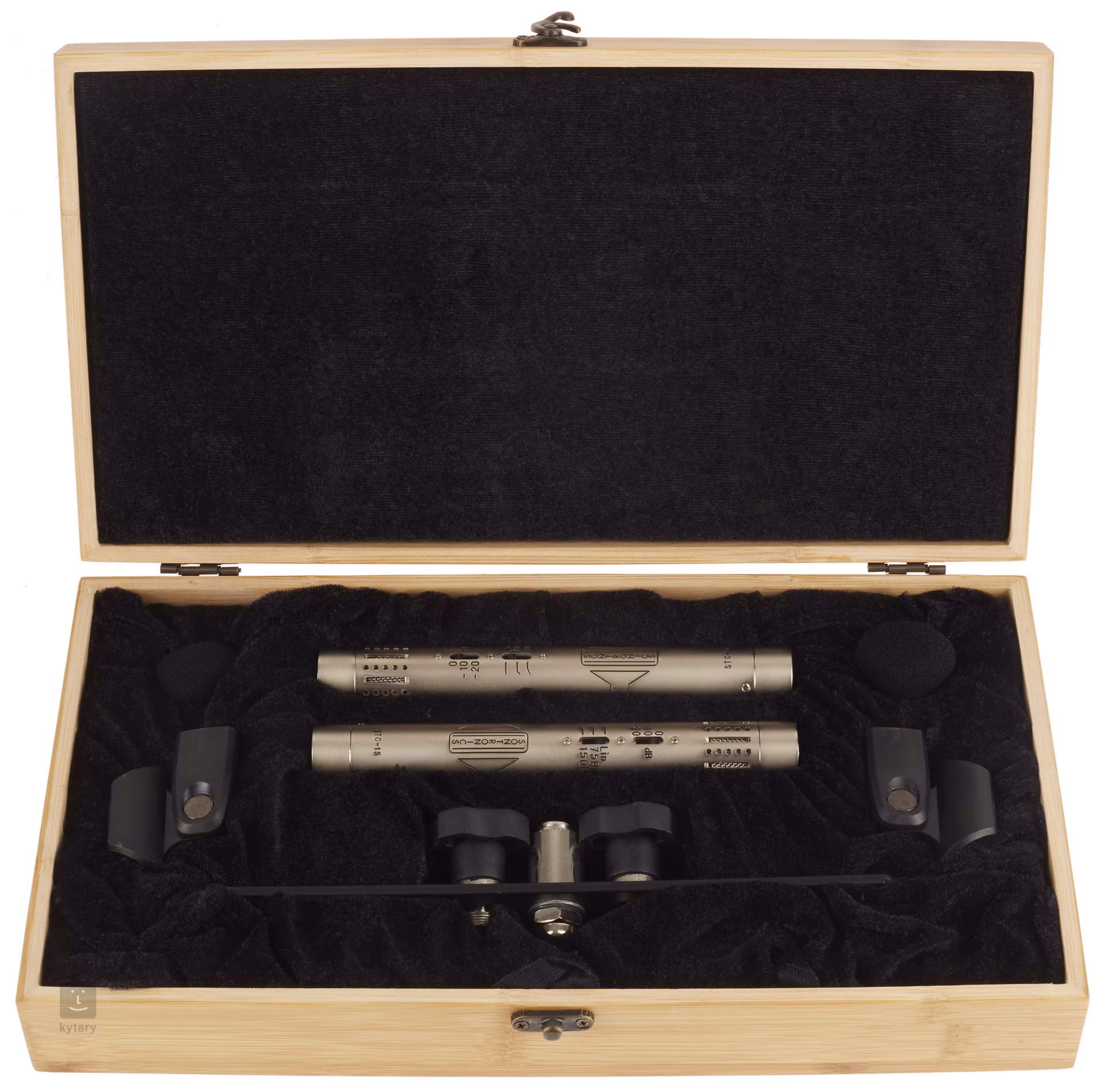 Součástí balení jsou také dva mikrofonní držáky, protivětrné kryty, stereo lišta pro uchycení páru mikrofonů a dřevěný kufřík. STC-1 navíc můžete rozšířit o mikrofonní kapsli s kulovou a hyperkardioidní směrovou charakteristikou.