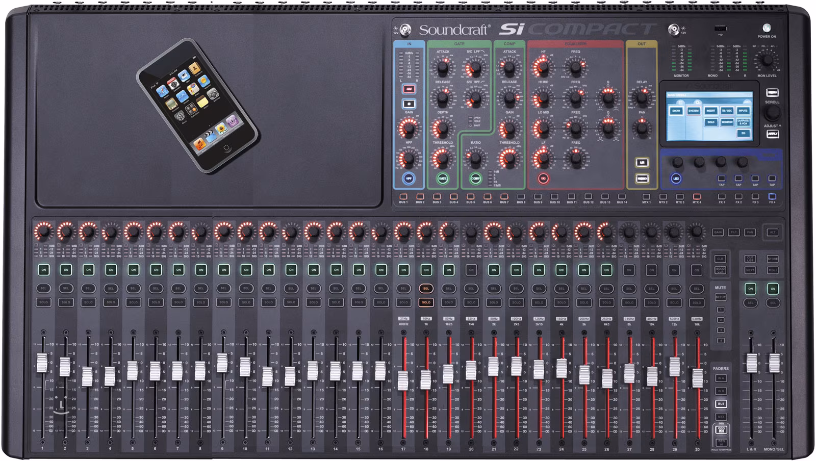 32 mikrofonních vstupů, kompaktní rozměry, 24-bit / 48kHz, 40bitové interní zpracování, 18 aux sběrnic, ekvalizéry od BSS, Audio kompresor a gate od dbx, 4 efektové jednotky Lexicon DSP, systém EMMA Lite ovládání, TOTEM technologie FaderGlow™ Direct out u mono kanálů 1 slot pro rozšiřující karty... To vše nabízí Si COMPACT 32