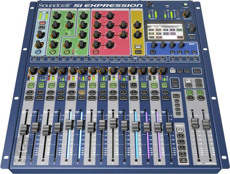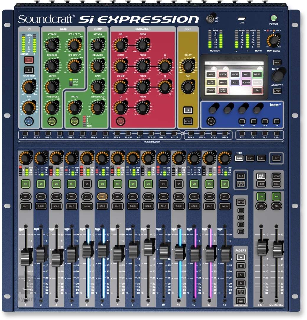 Si Expression je výkonná a velmi efektivní digitální konzole vybavená nejnovější DSP technologií doplněná o unikátní systém podsvícení ovladačů (FaderGlow). Mix kombinuje příjemné analogové pracovní prostředí a výhody digitálního systému. Pomocí přiřaditelných funkcí k jednotlivým faderům tak můžete přizpůsobit ovládání pro koncertní ozvučení, monitoring nebo nahrávání. Kromě standardních hardwarových vstupů/výstupů lze prostřednictvím rozšiřujících slotů ViSi Connect navýšit kapacitu vstupů až na 66. Každý z nich přitom stále disponuje samostatným HP filtrem, delayem, šumovou bránou, kompresorem a čtyřpásmovým ekvalizérem.