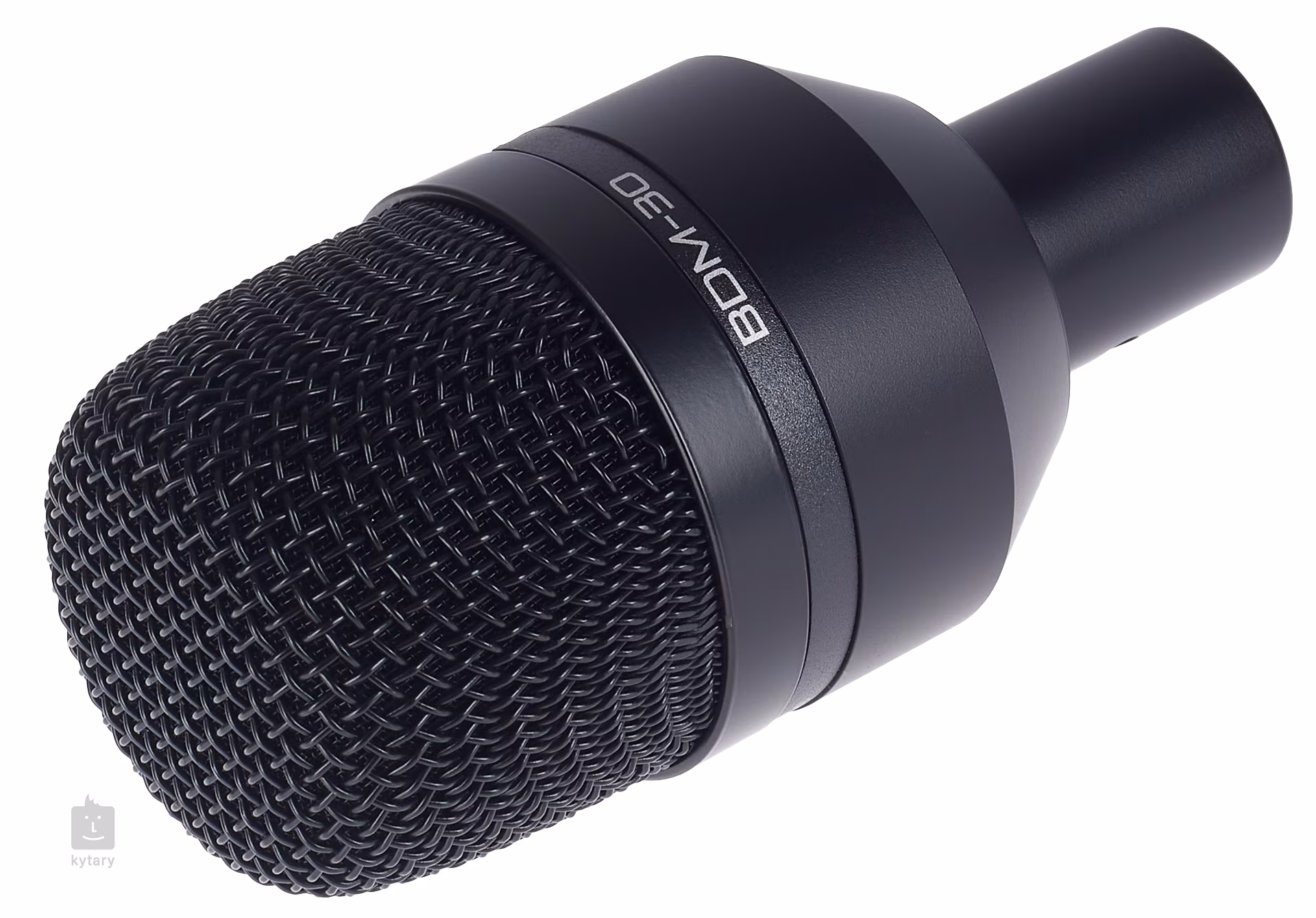 Dynamický mikrofon vhodný pro bicí a perkusní nástroje s nízkým frekvenčním rozlišením jako např.: bass drum, pochodový buben. BDM-30 pozvedne zvuk vašeho kopáku o level výš, nabízí vysokou citlivost a téměř nulovou zpětnou vazbou, proto ho oceníte nejen při live performance, ale i při studiových session. Pogumovaná konstrukce vám potom zajistí vysokou odolnost a dlouhou životnost.