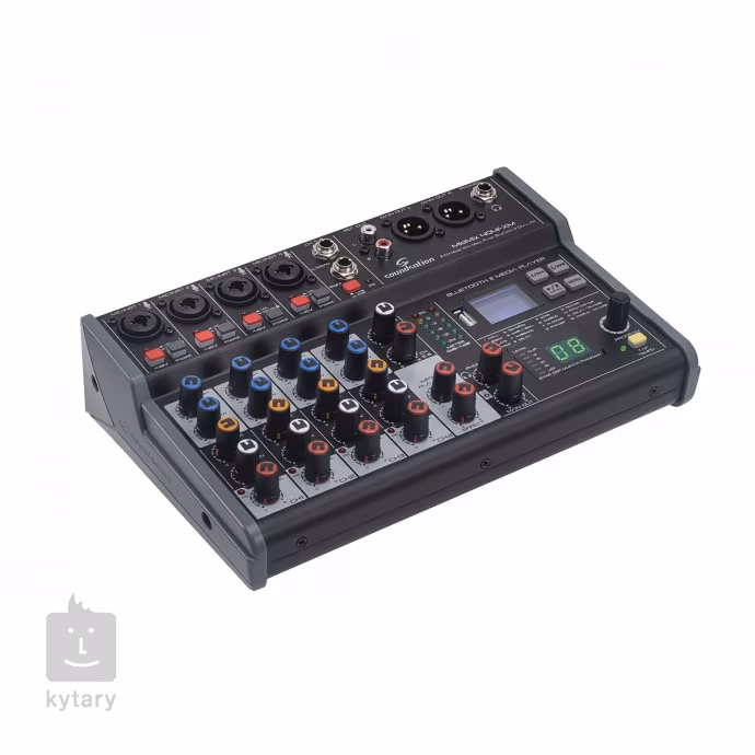 Miomix 404FXM je osmikanálový mixážní pult se čtyřmi kombinovanými XLR/TRS vstupy (zde připojíte mikrofony, elektifikované nástroje či linkové signály), čtyřmi line vstupy (2x Jack, 2x RCA / stereo Jack) , dvěma XLR výstupy do PA, sluchátkovým výstupem pro detailní monitoring. Kanály 1 - 4 můžete upravit dvoupásmovým ekvalizérem, všem kanálům nastavíte panoramu a můžete také přimíchat signál z FX jednotky. Nechybí fantomové napájení pro kondenzátorové mikrofony. Přehled o vašem nastavení získáte prostřednictvím šesti úrovňového LED ukazatele a podsvíceného displeje.