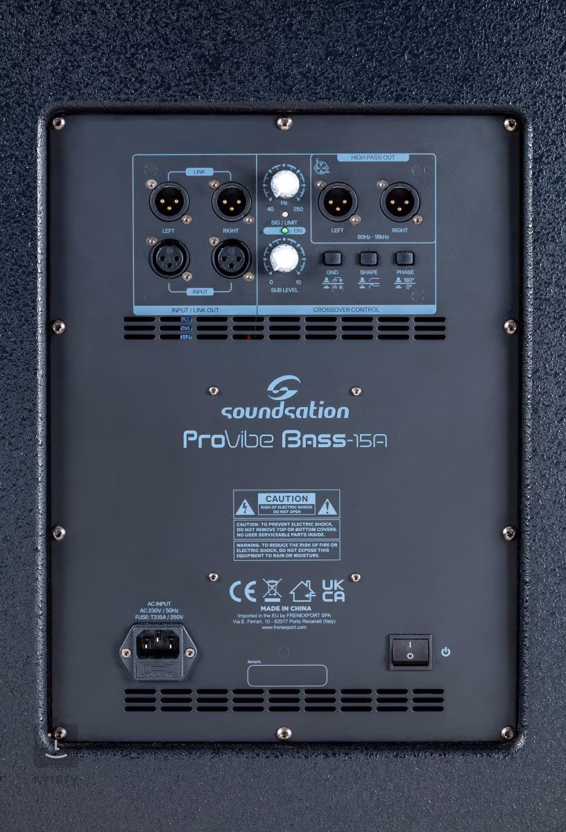 Pro maximální spolehlivost je subwoofer vybaven ochranami proti přetížení, přehřátí i signálovým špičkám, které chrání jak samotné zařízení, tak připojené komponenty. Díky své konstrukci a výkonu je PROVIBE BASS 15A ideální zejména pro venkovní akce a větší prostory, kde je potřeba dostatečný tlak v nízkých frekvencích.