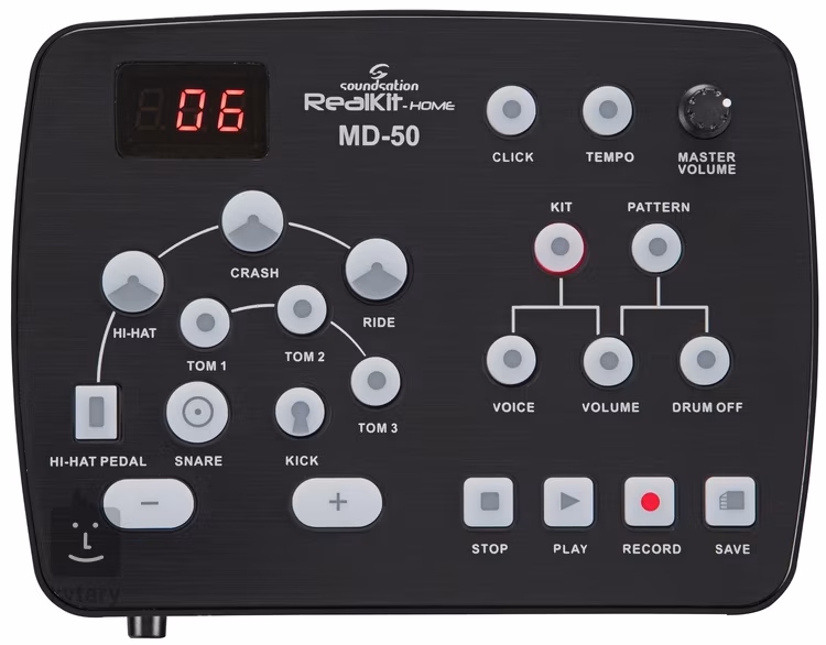 Real Kit Home od firmy Soundsation je základní set elektronických bicích vhodný především pro domácí cvičení. I přesto nabízí zajímavé funkce jako dynamicky citlivé pady, dvouzónový snare pad nebo Crash činel s funkcí choke pro rychlé ultumení zvuku rukou.