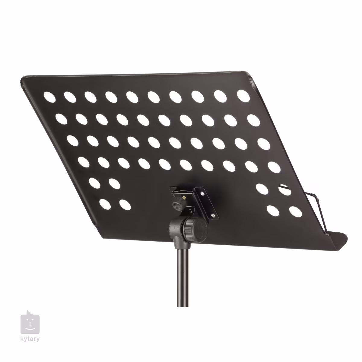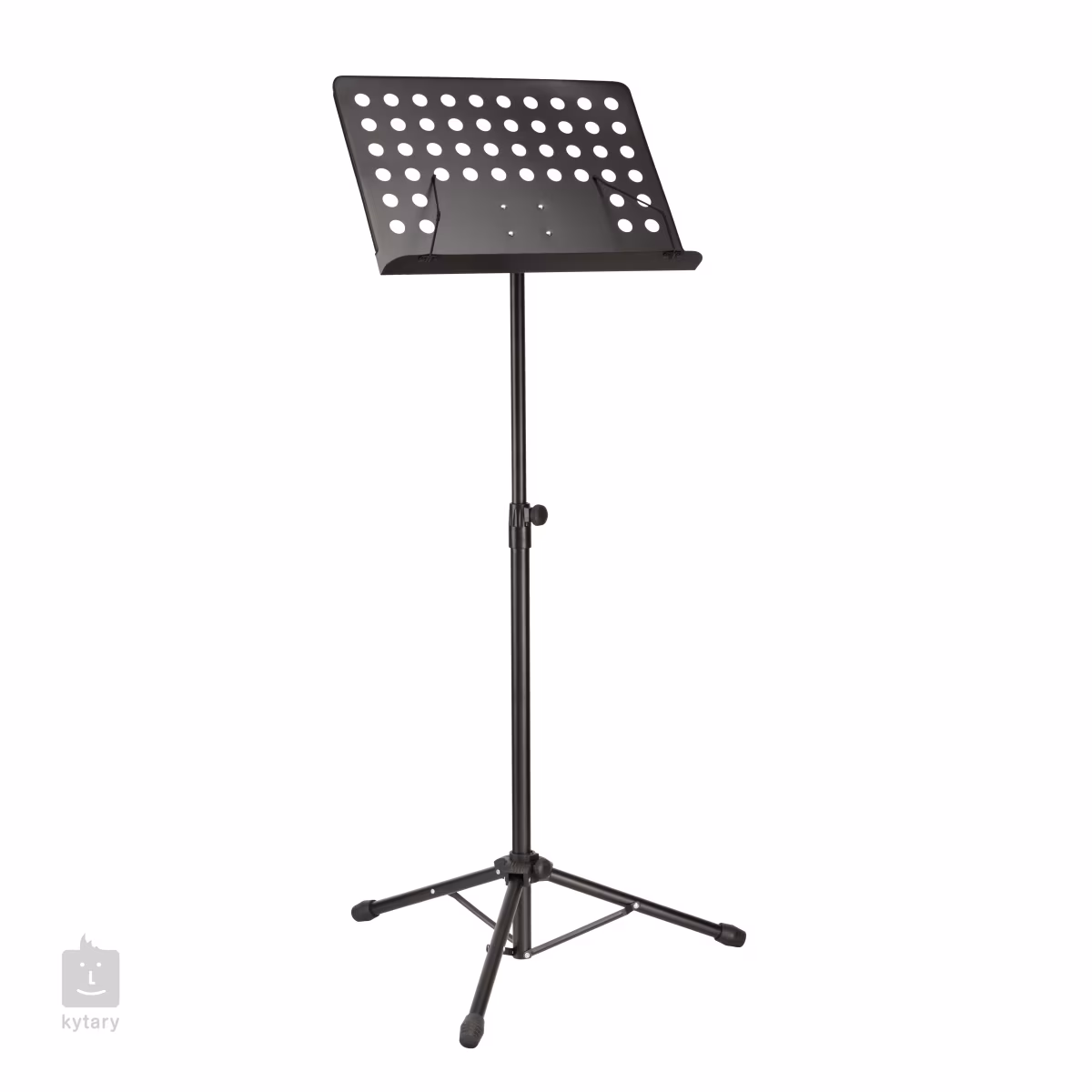 Celokovový notový stojan značky Soundsation s perforovaným pevným notovým pultem je univerzálně vhodný pro hru v orchestru i v kapelách. Nabízí základnu na trojnožce, nastavitelnou výšku (80 – 159 cm) a snadné a rychlé připevnění/odejmutí notového pultu. Rozměry notového pultu odpovídají 47,5 x 34,5 cm, průměr kovových trubek 22-28 cm.